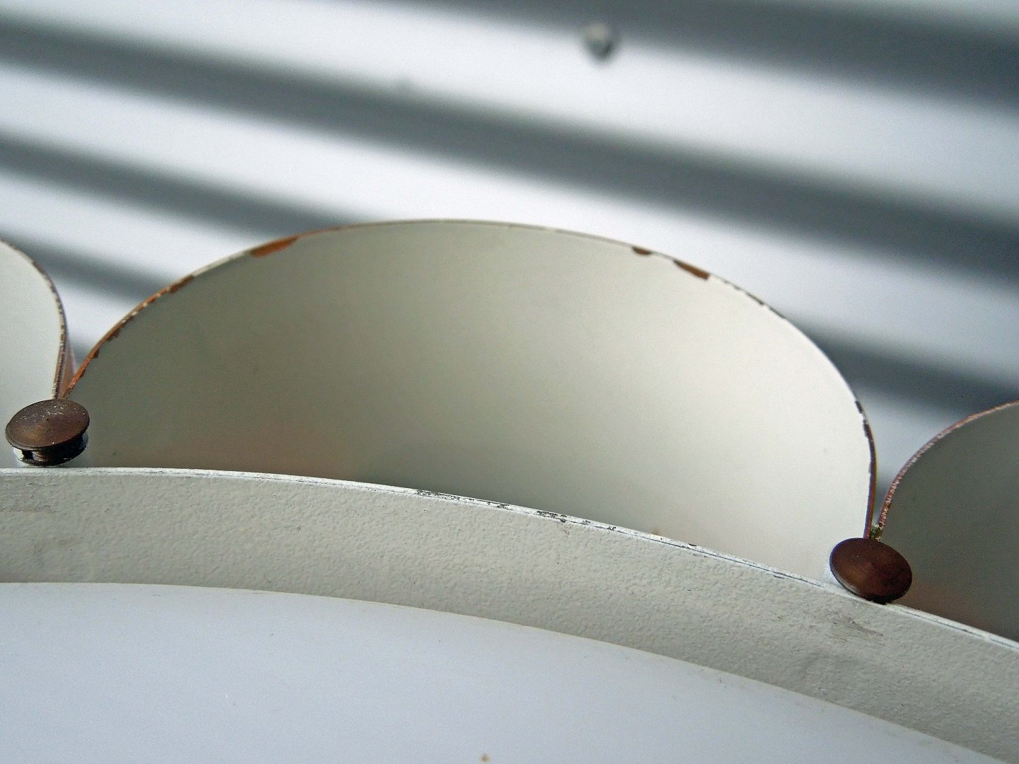 Loftslampe udformet af kobber og sortlakeret metal. Fra Verner Schou.