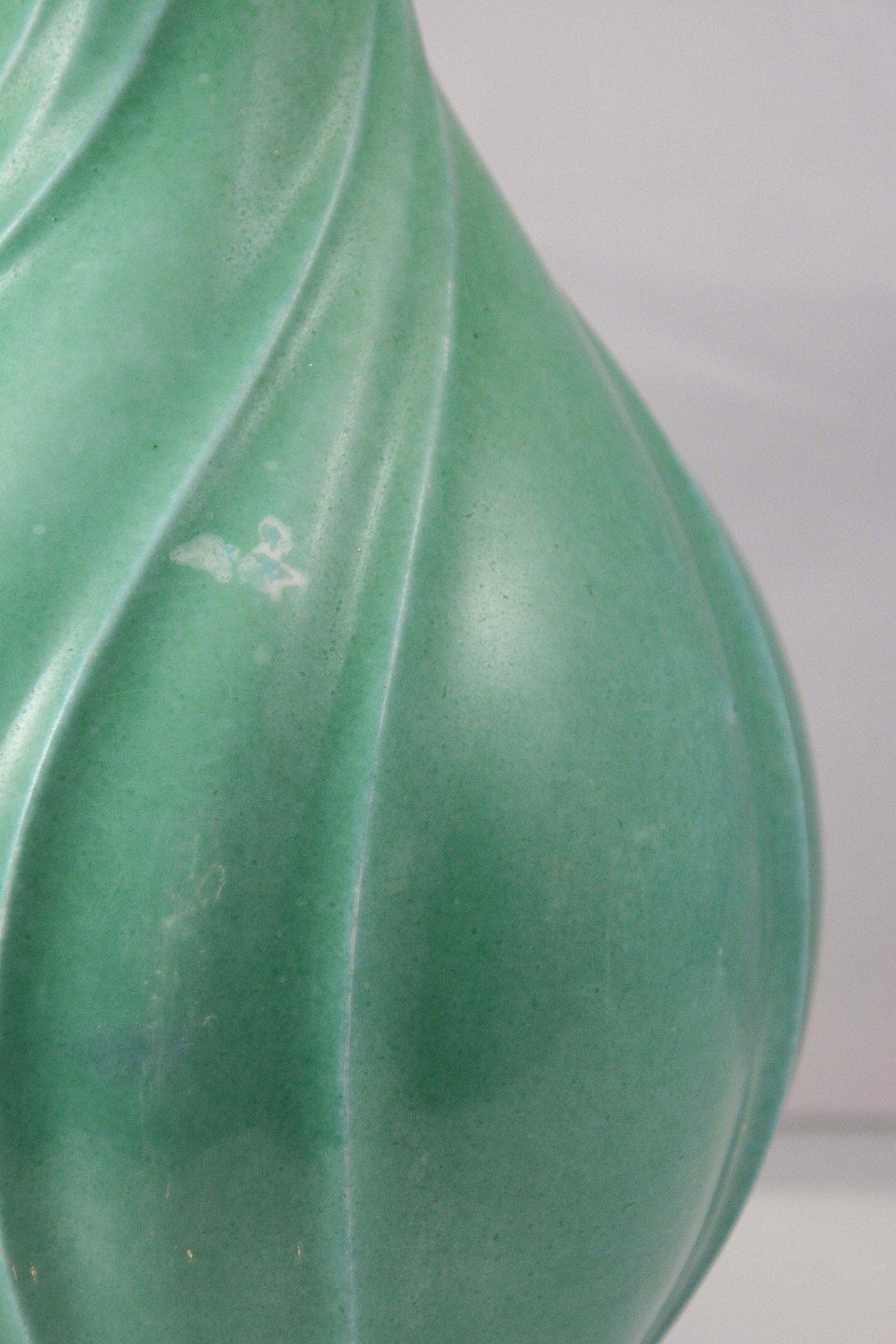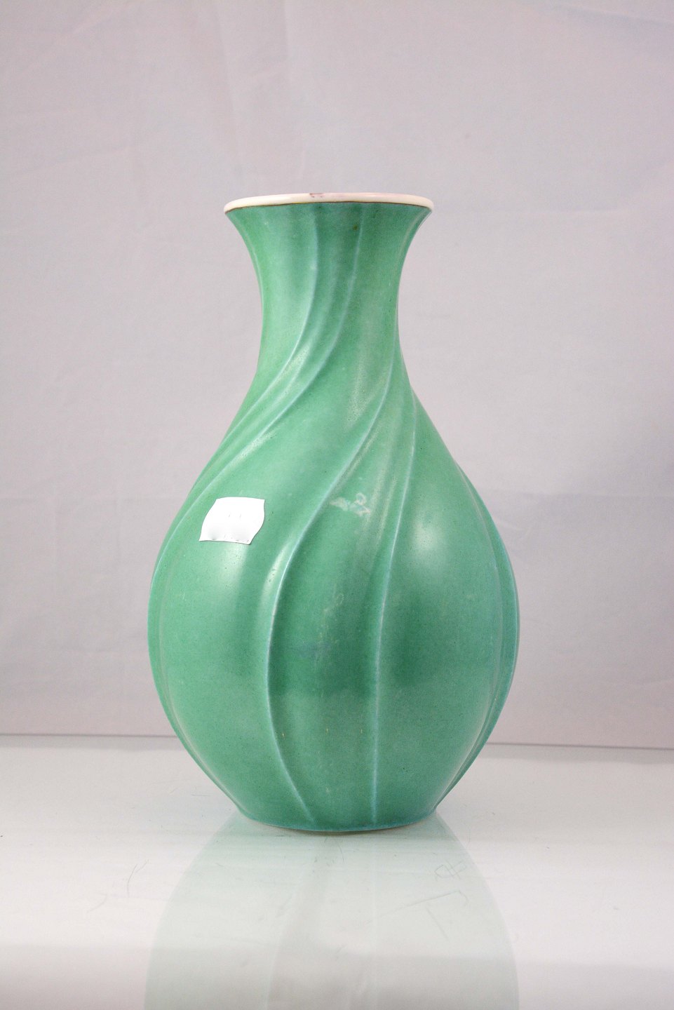 Grøn Lyngby porcelæns vase, Svejfet med guldkant