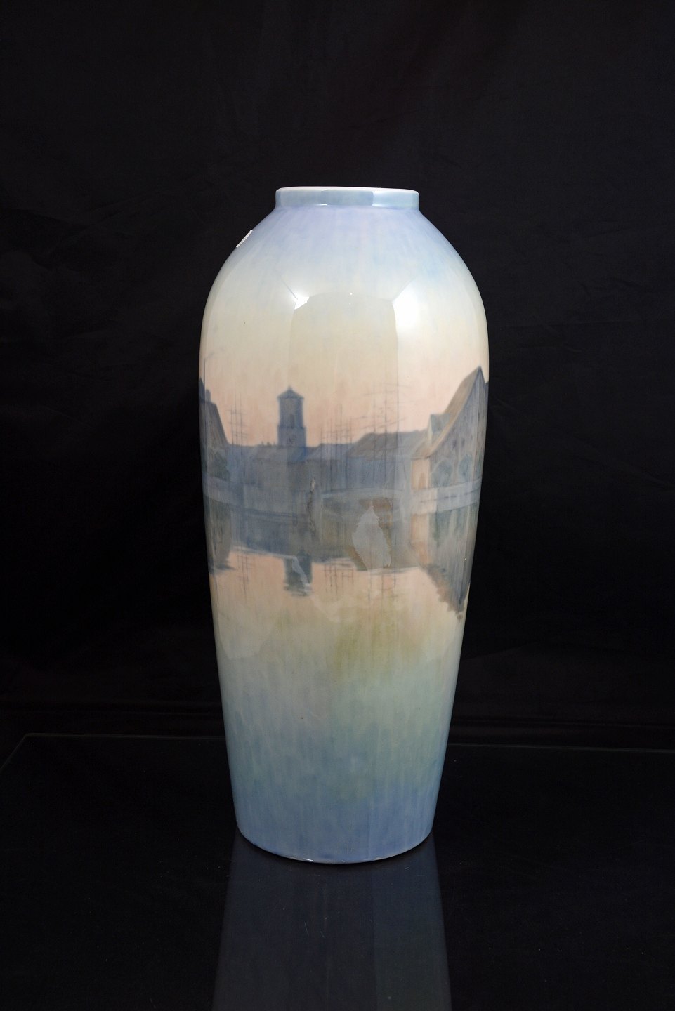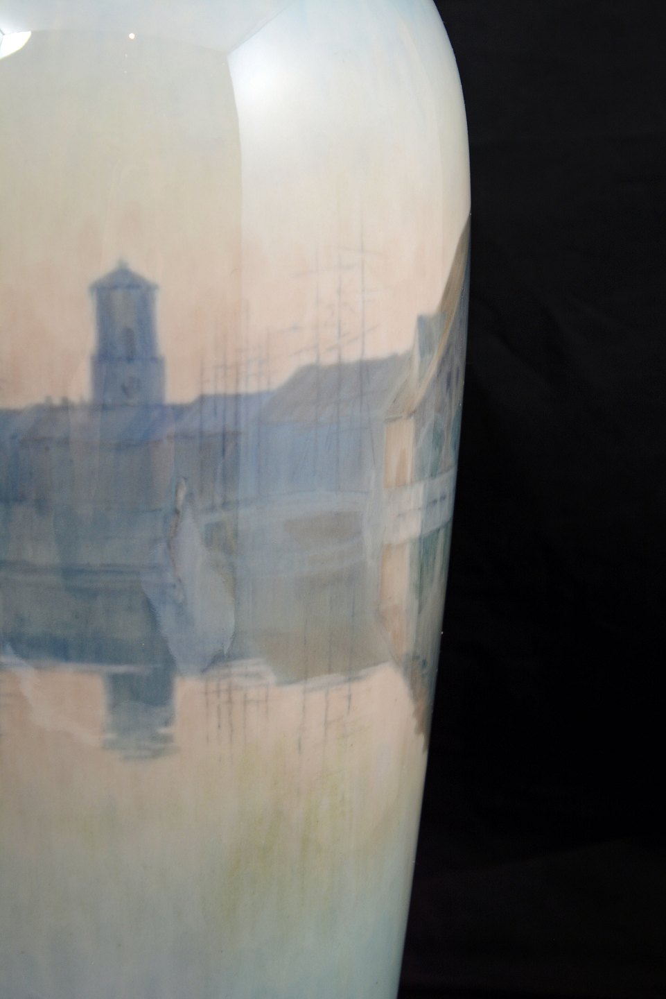 Vase med by og havne motiv fra Bing og Grøndahl.