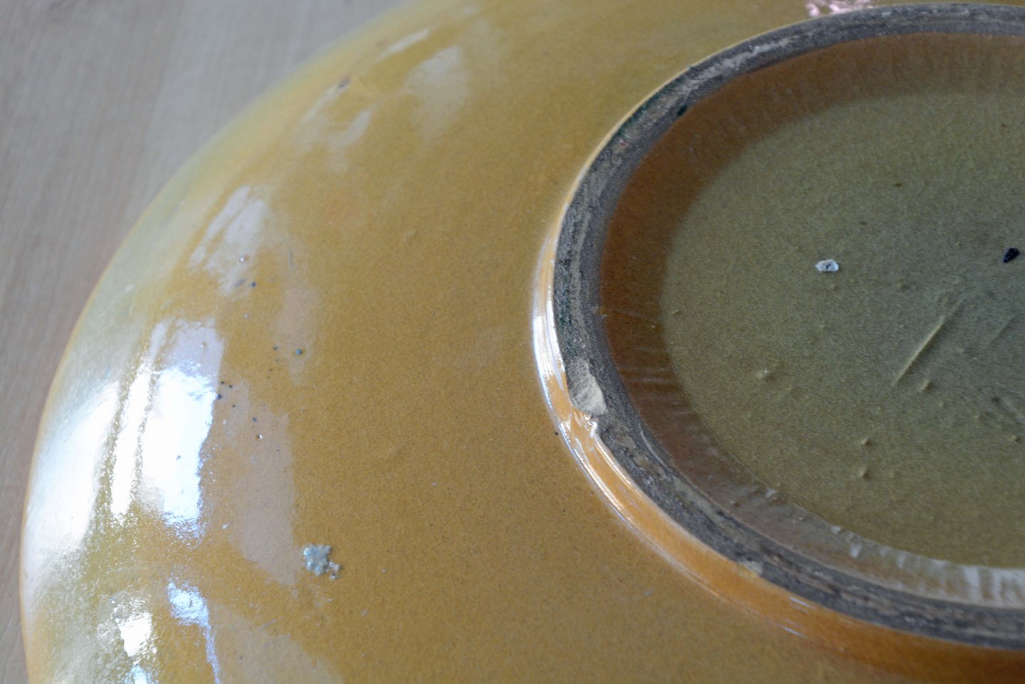 Keramikfad med motiv af 2 skovarbejdere designet af Jais Nielsen