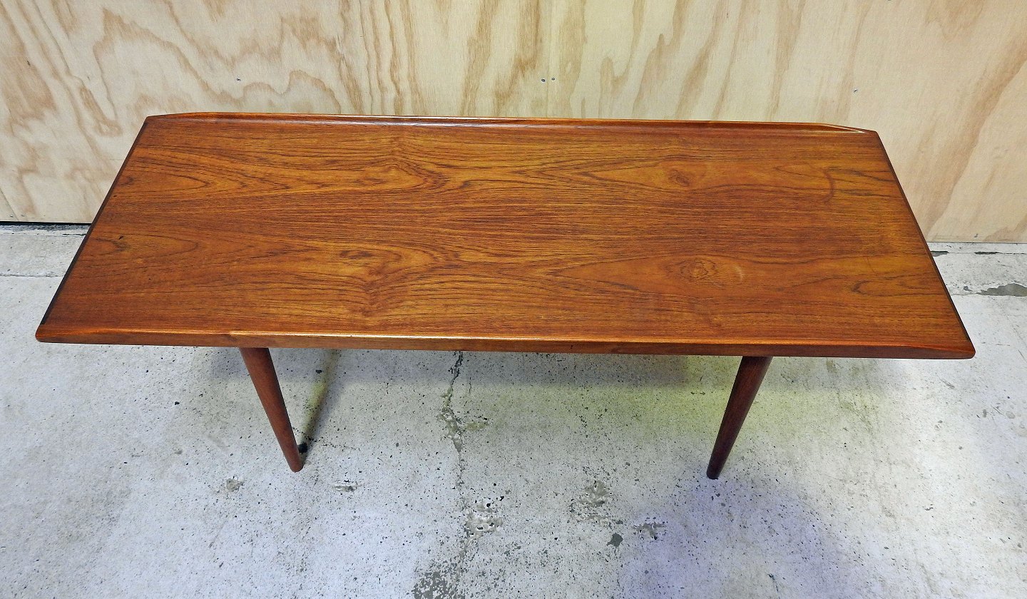 Sofabord i teaktræ med kehlet kant. Prod. Winge møbelfabrik.