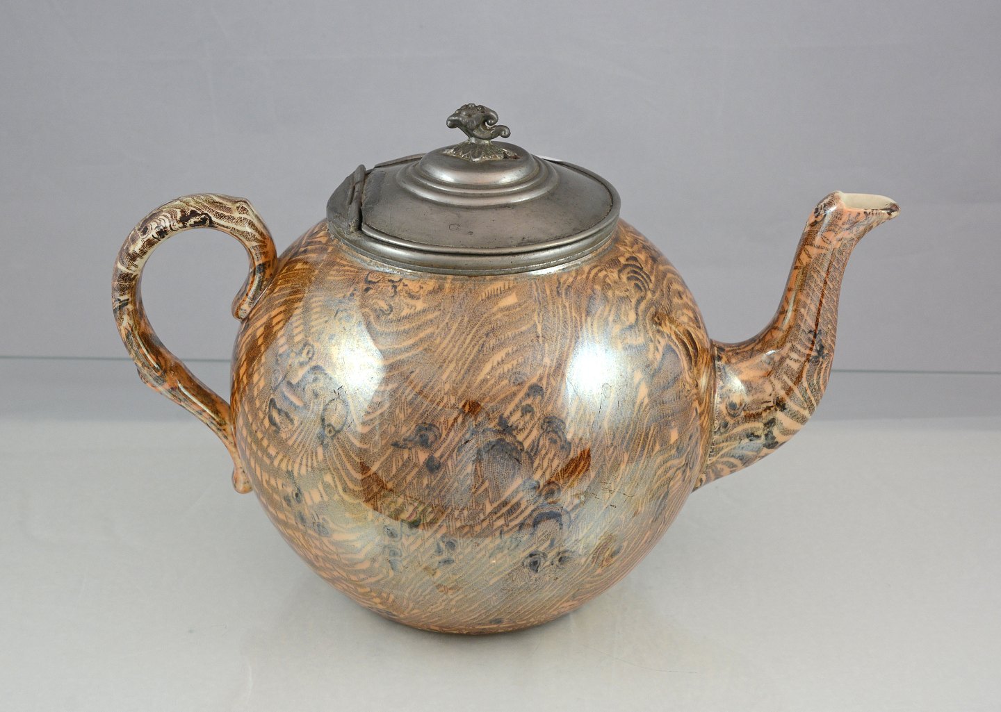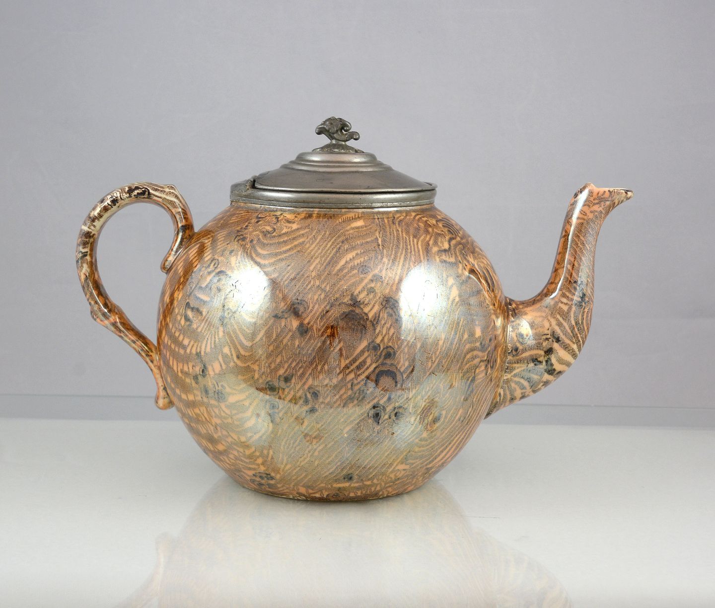 Fajance tekande med tinlåg