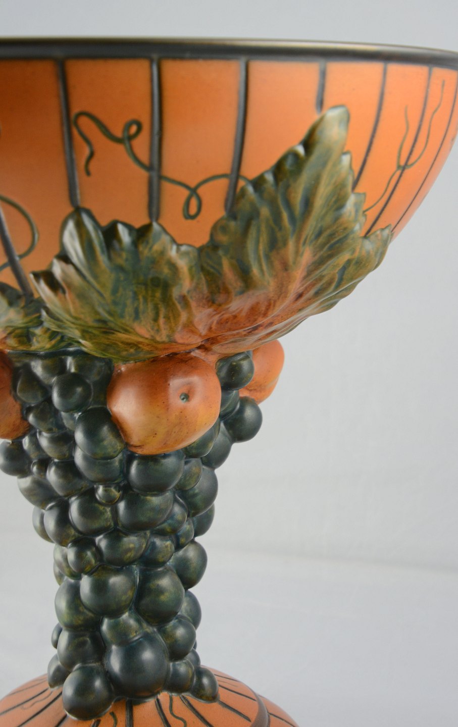 Stor opsats (nr. 180) fra Ipsens enke. Frugtopsats eller kageopsats er udformet i keramik med motiv af drueranker og blommer.