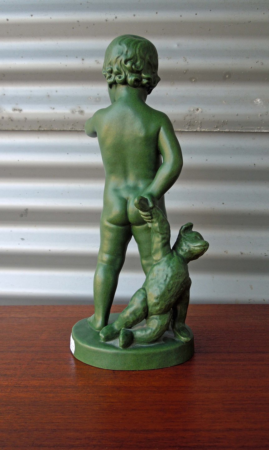 Figur af Dreng med bamse (nr. 68 XII) af Adda Bonfils for Ipsens Enke.