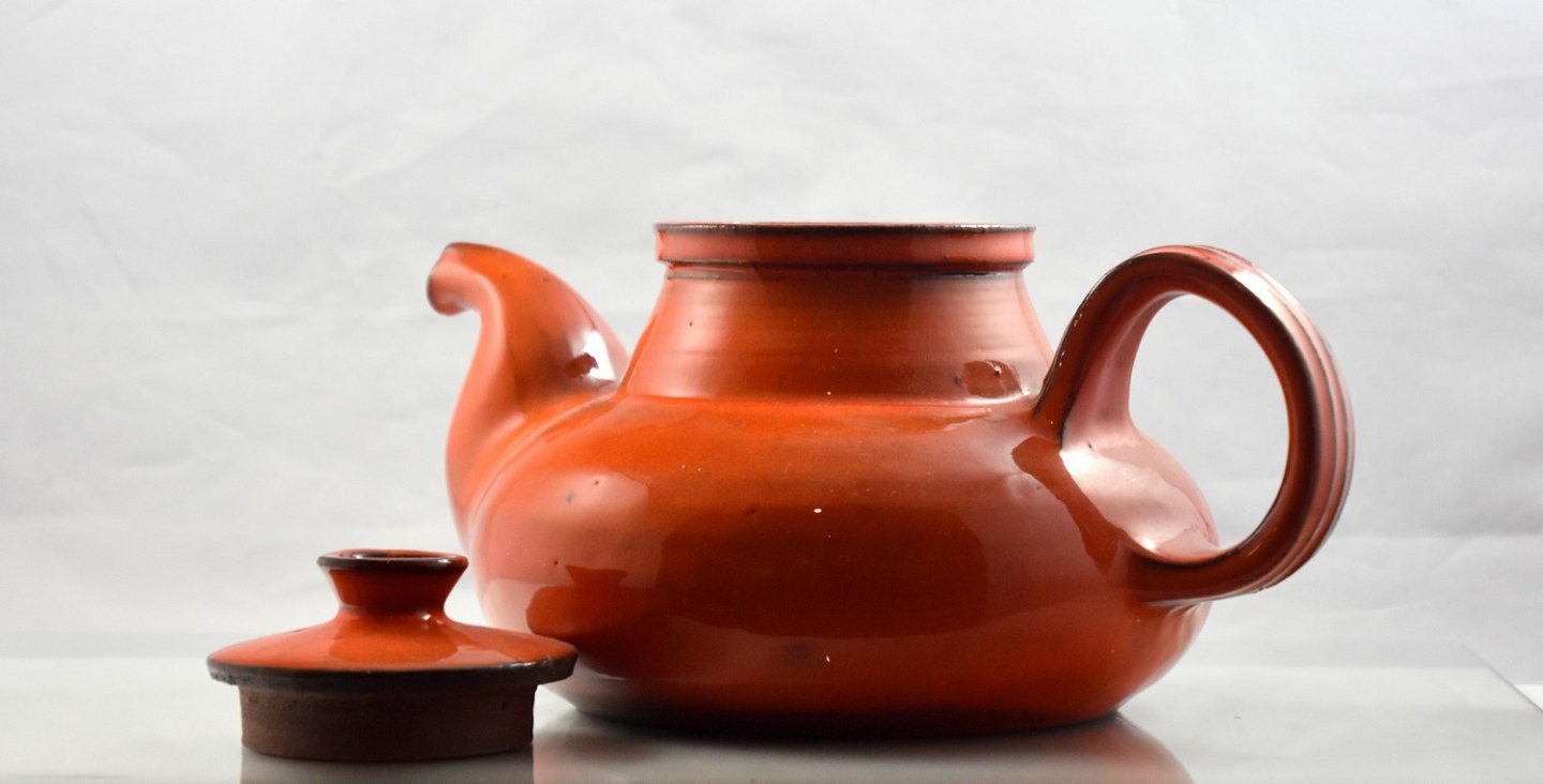 Kähler stentøjs tekande med orangerødt glassur