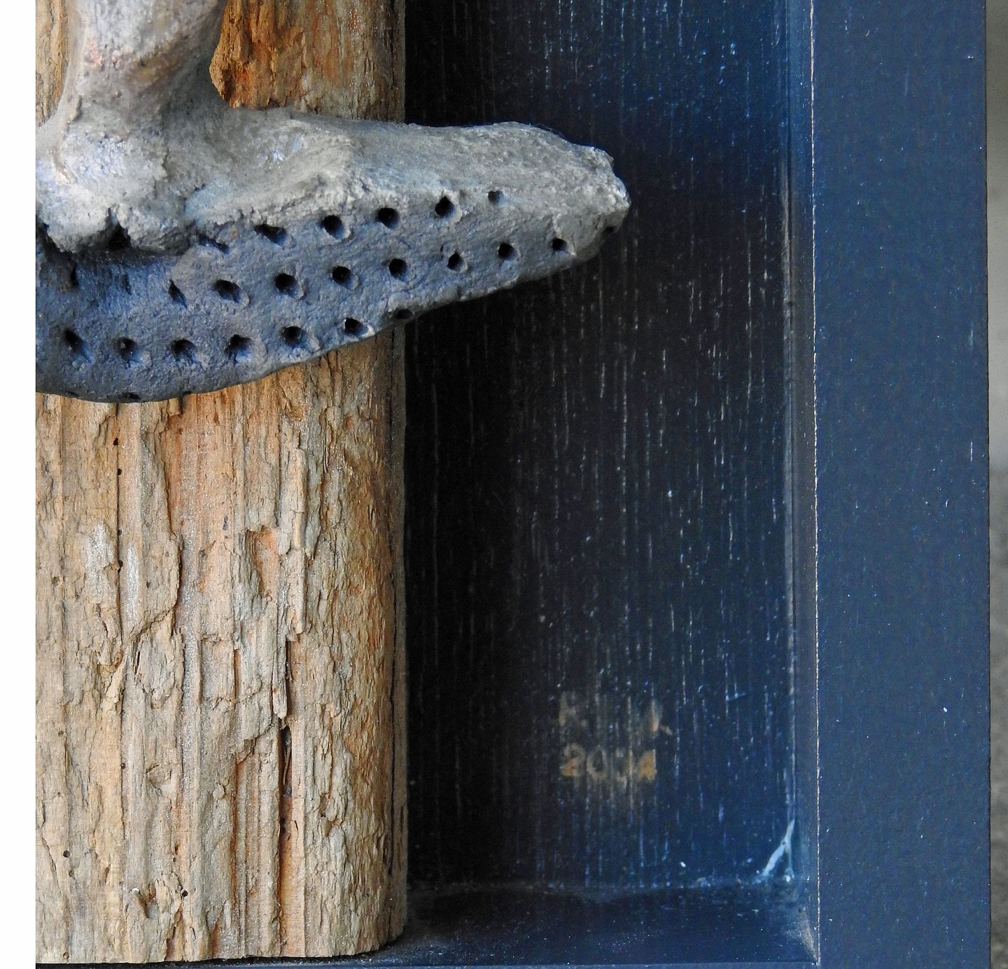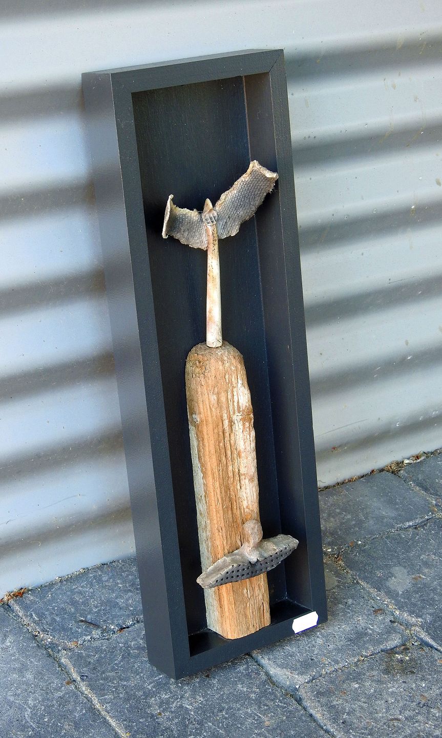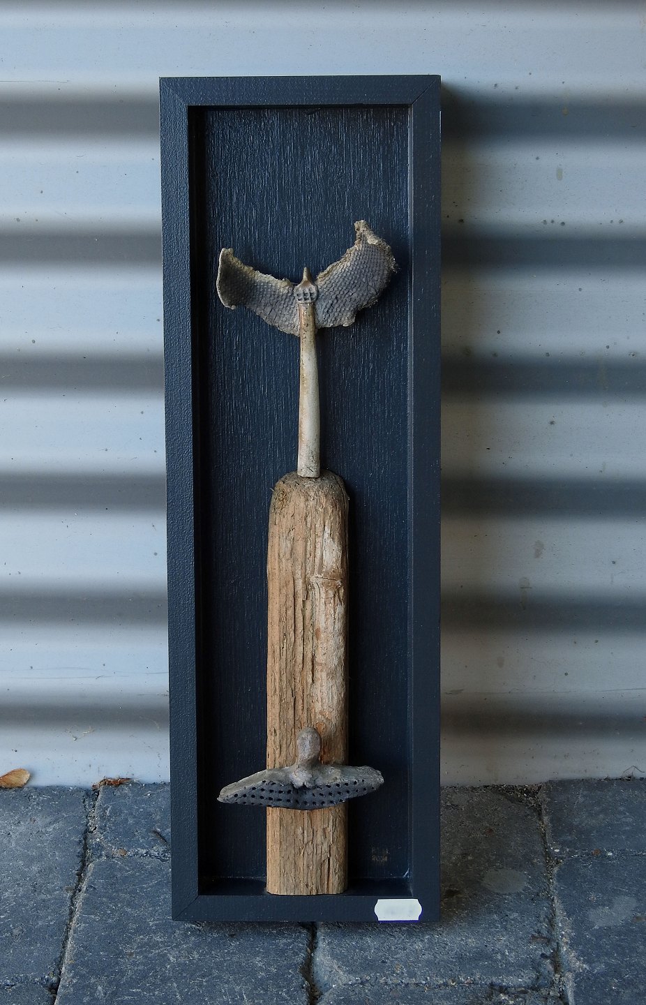 Væg relief af keramik og træ