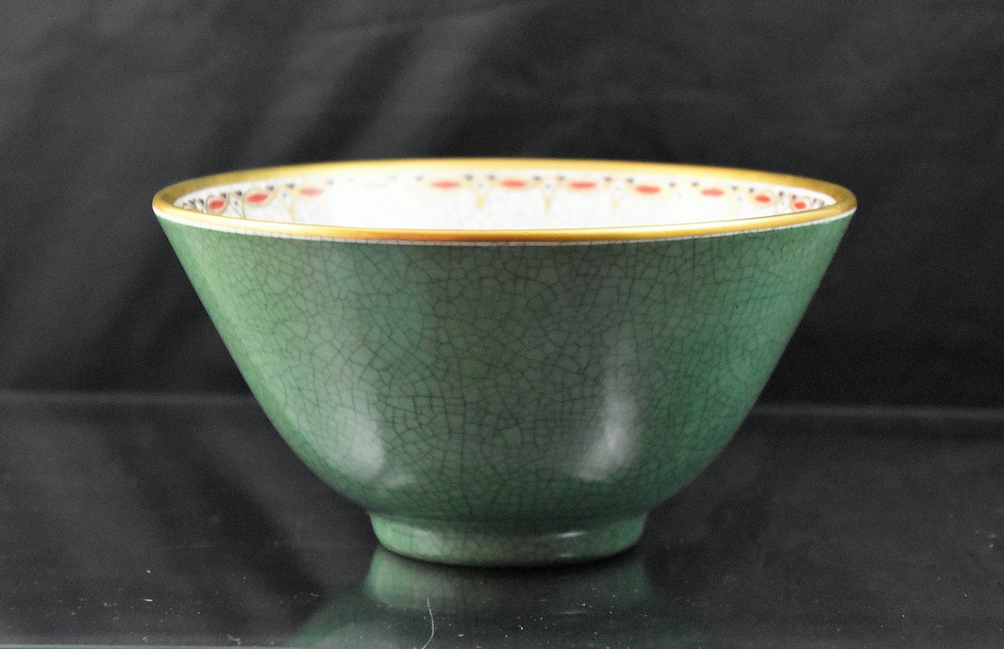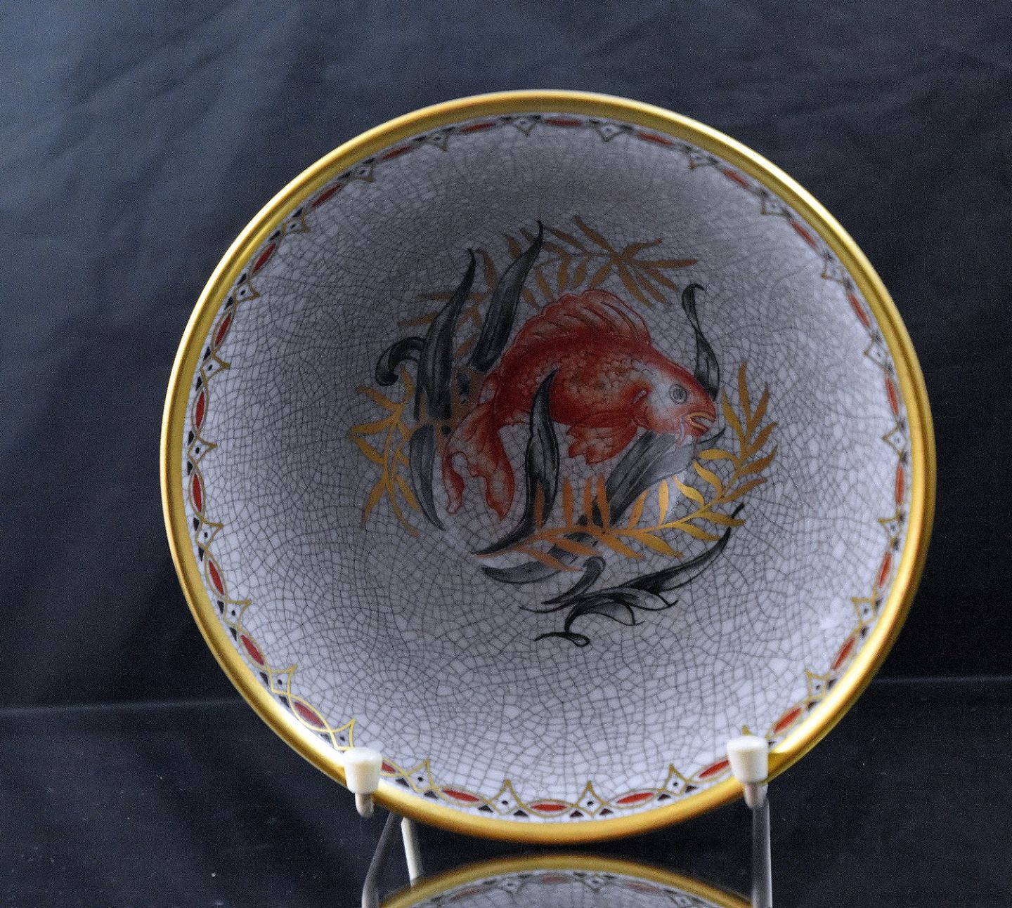 Craquele skål i porcelæn med guld kant og motiv af Koi karbe. Nr. 113/361