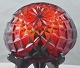 Fyens Glasværk, rød jordbærskål med bølgekant og af presset glas Odin, fra 1924. Skålen har en anelse slid indvendig i bund