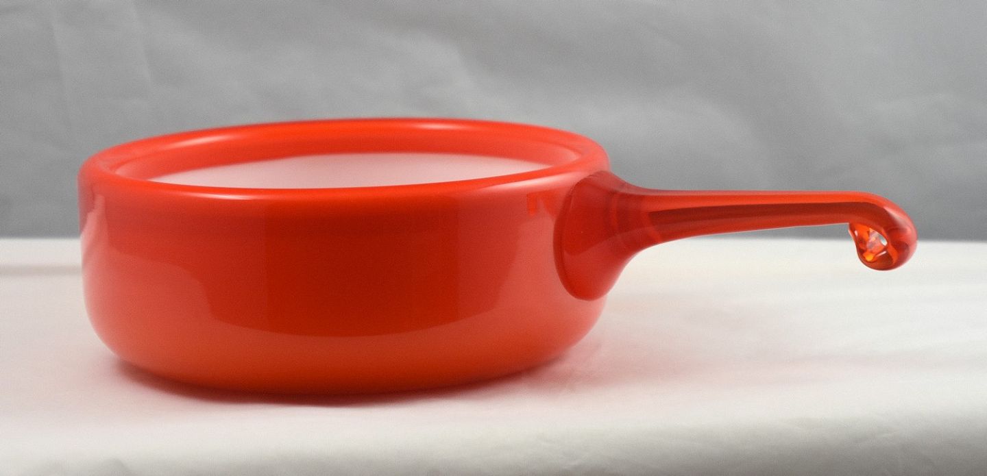 Holmegaard, Palet, orange sildeskål med hank. design Michael Bang