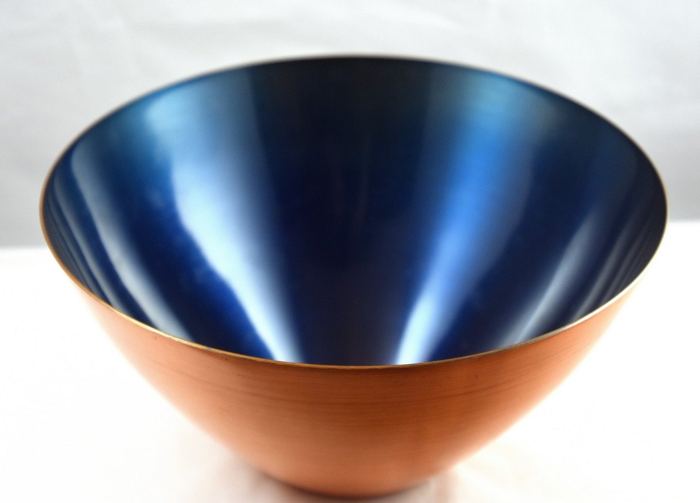 Corona kobber skål med blå lak