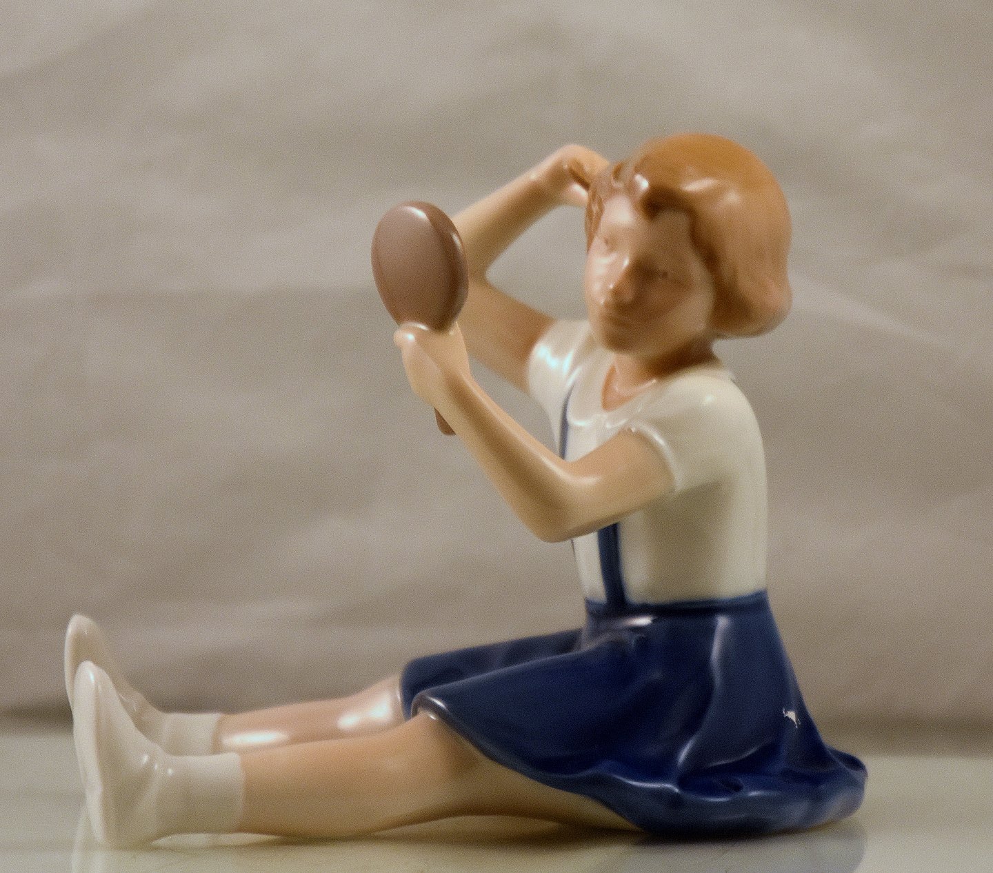 Bing & Grøndahl figur Pige med spejl "Forfængelighed" (2318). Kunstner Svend Jespersen