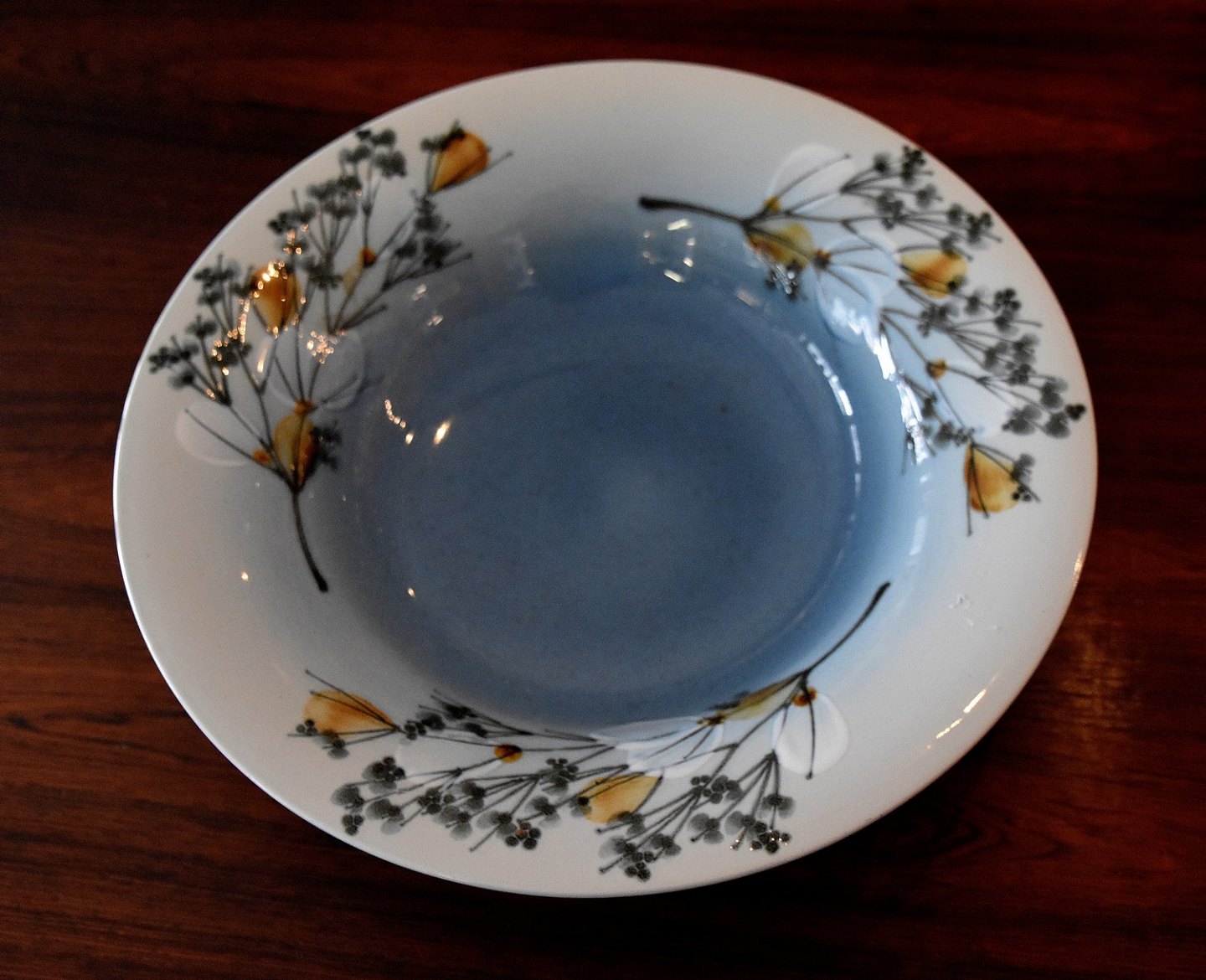 Royal Copenhagen Celeste fajance skål ( 967/3840).Den kongelige skåle/bordfad er designet af Ellen Malmer