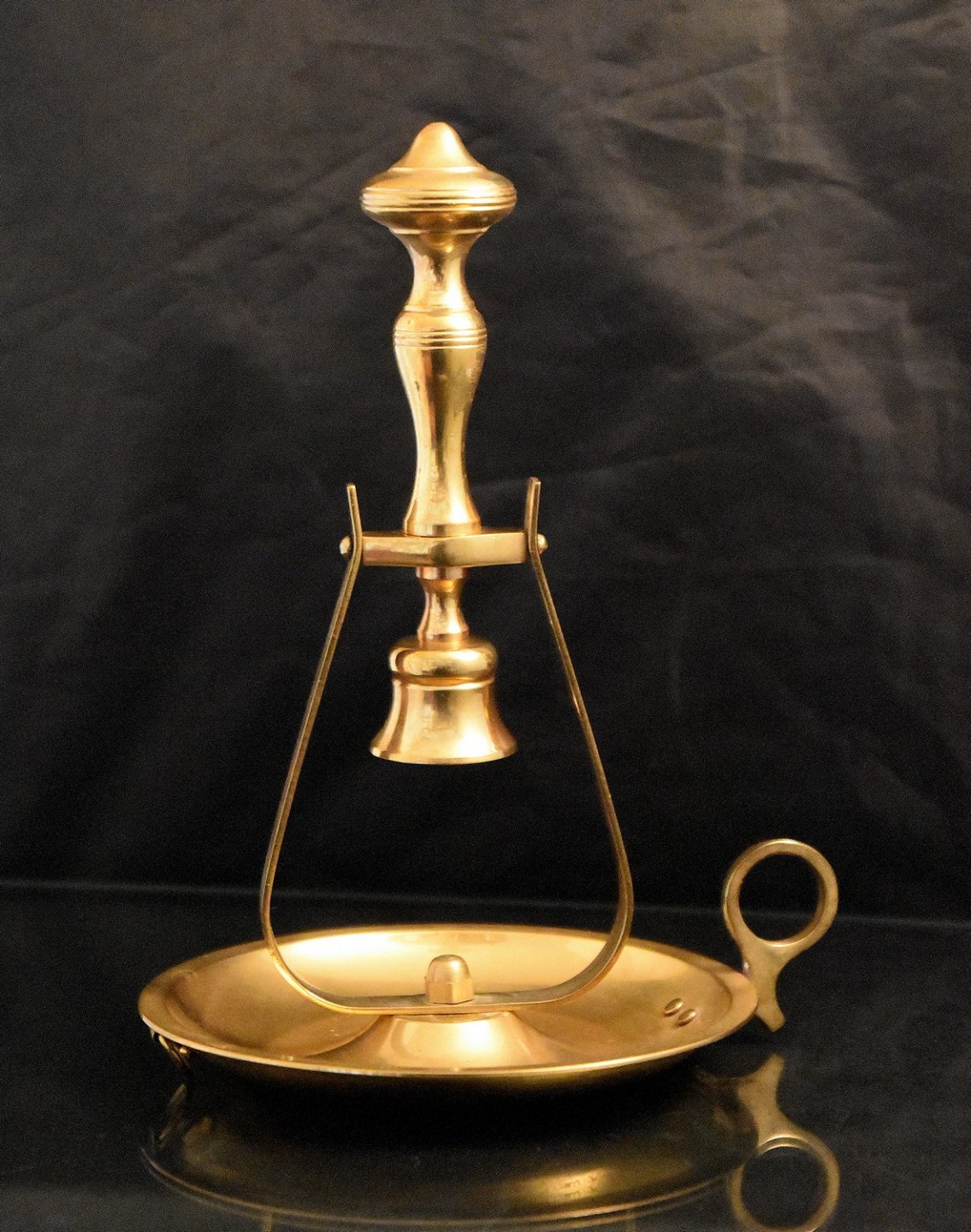 Messingstage med bevægelig holder til lys, der gør at lyset altid er vandret, formentlig anvendt til skib