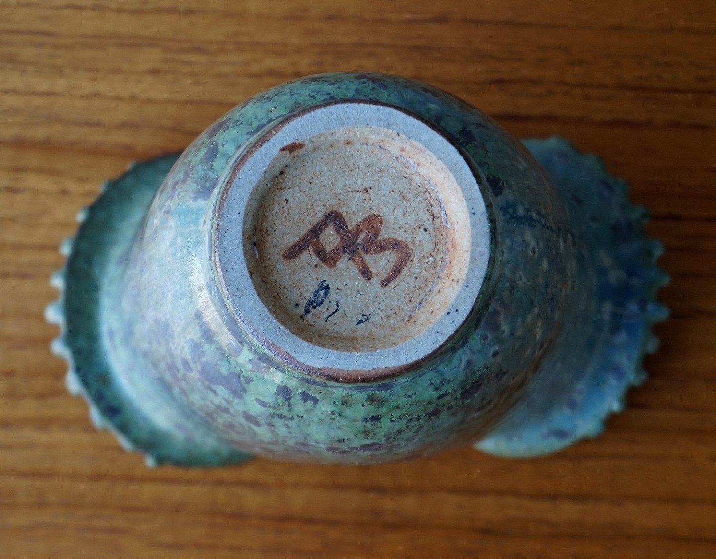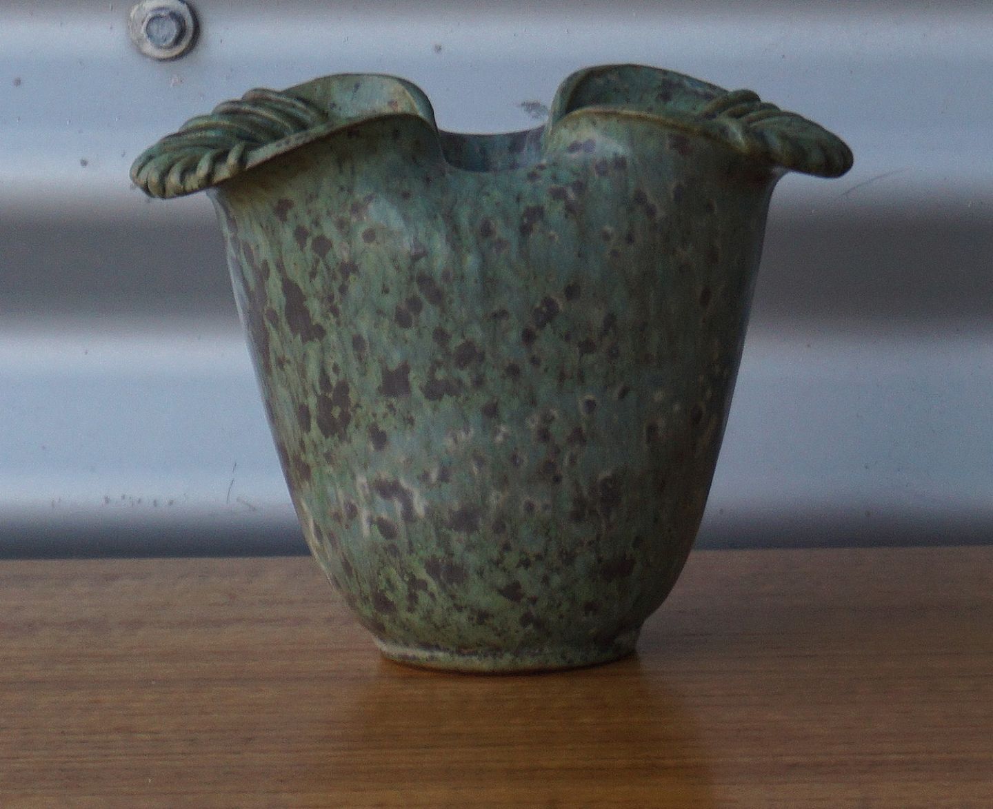 Arne Bang vase med grønlig glassur og brune pletter i den grønlige glassur i flot stand