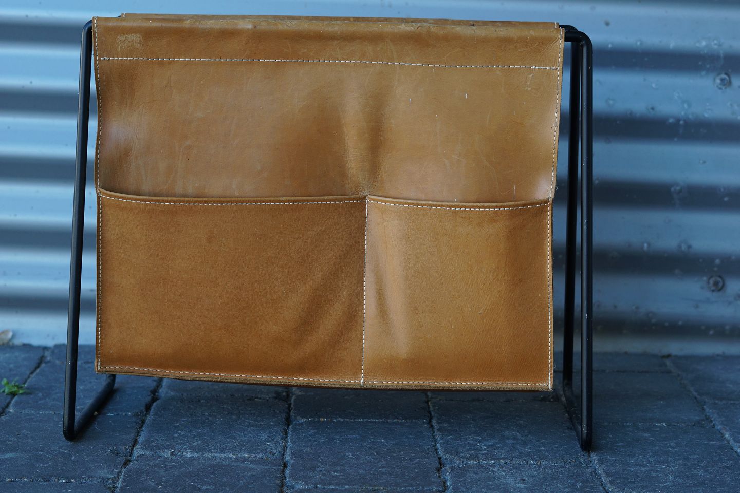 Avisholder Sort stel med brun læder. Design Verner Panton