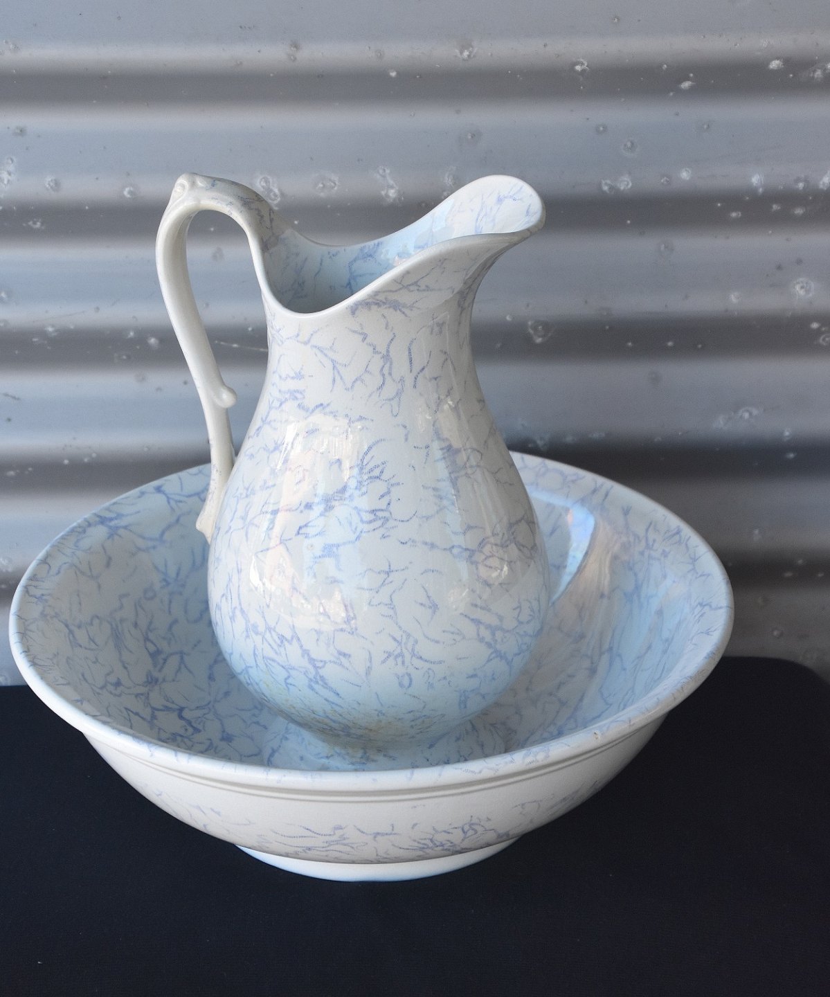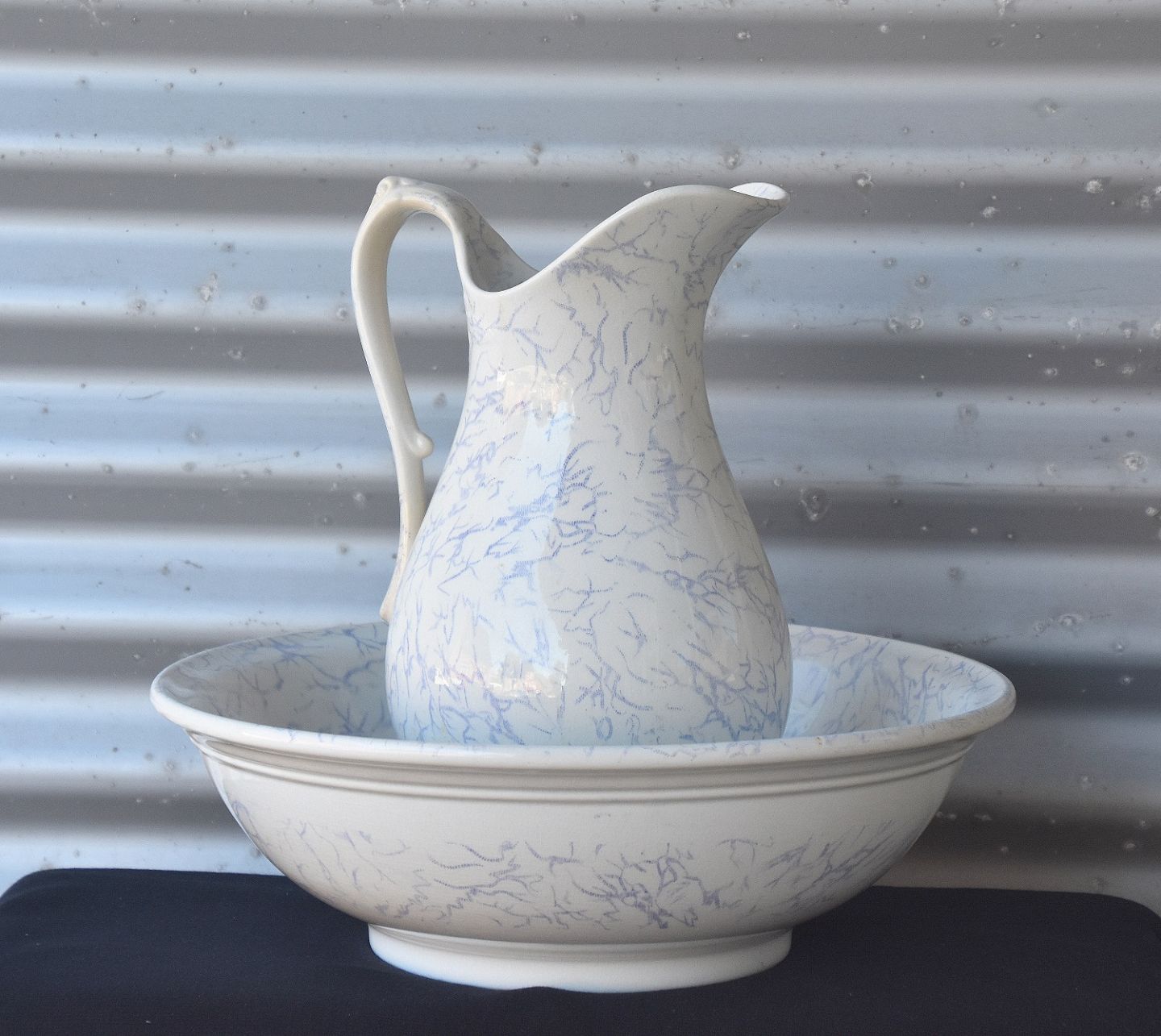Servantesættet er blålilla marmoreret.