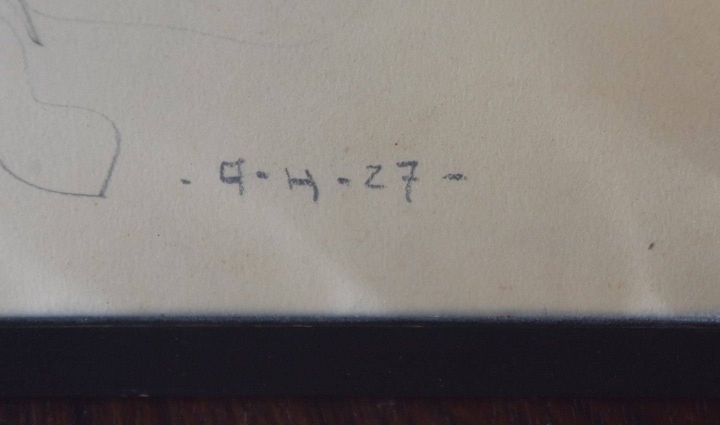 Anders Hune kultegning af gammel dame, mærket AH 27