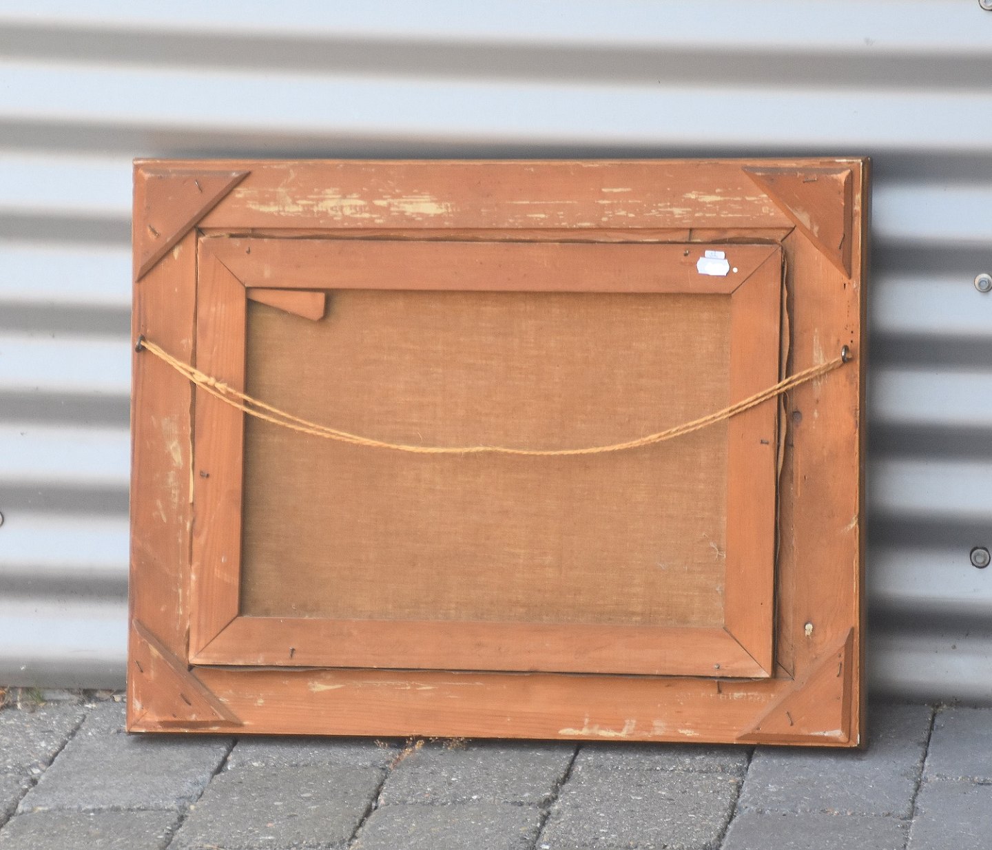 Maleri af Edmund Fischer. Gårdsplads med ænder.