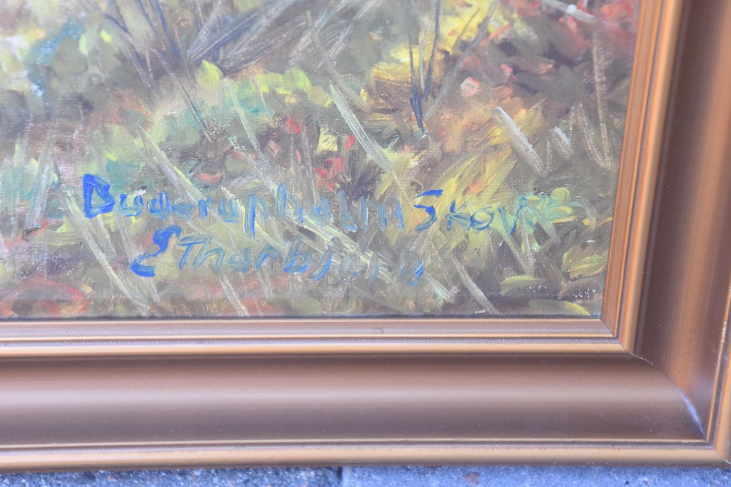 Maleri af Evelyn Thorbjørn af Budumholm Skov.