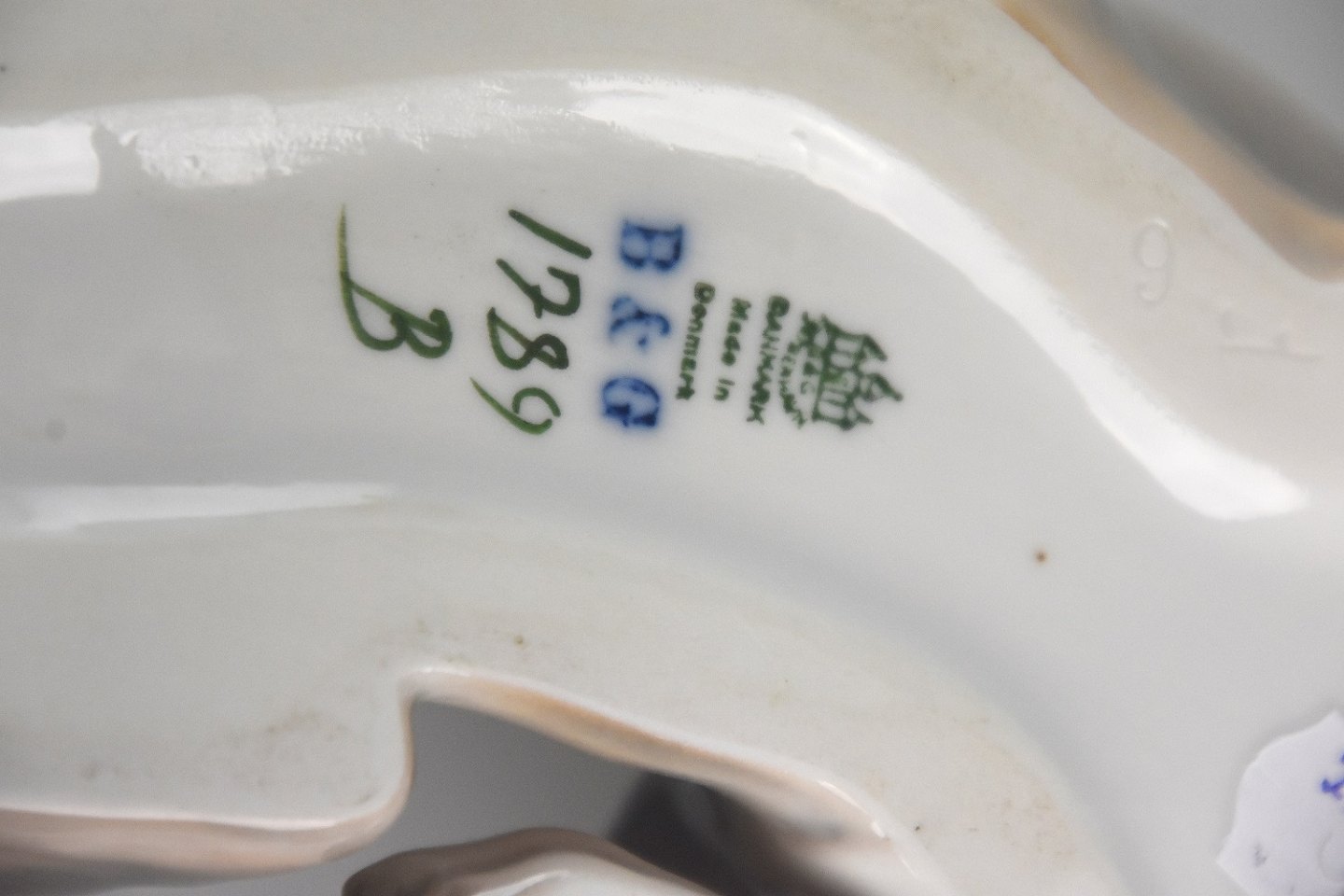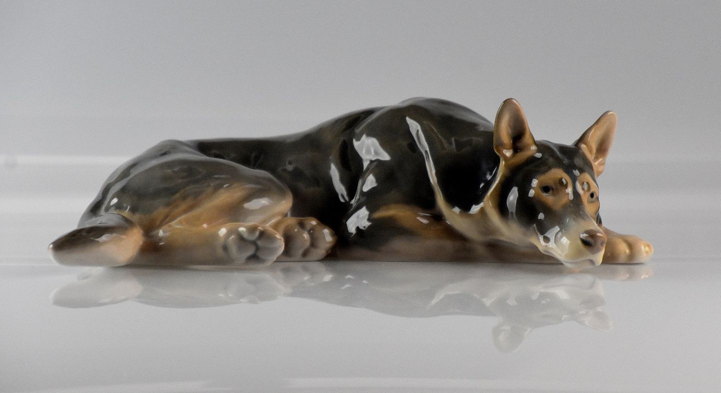 Figur i porcelæn med motiv af liggende schæferhund. Nr. 1789