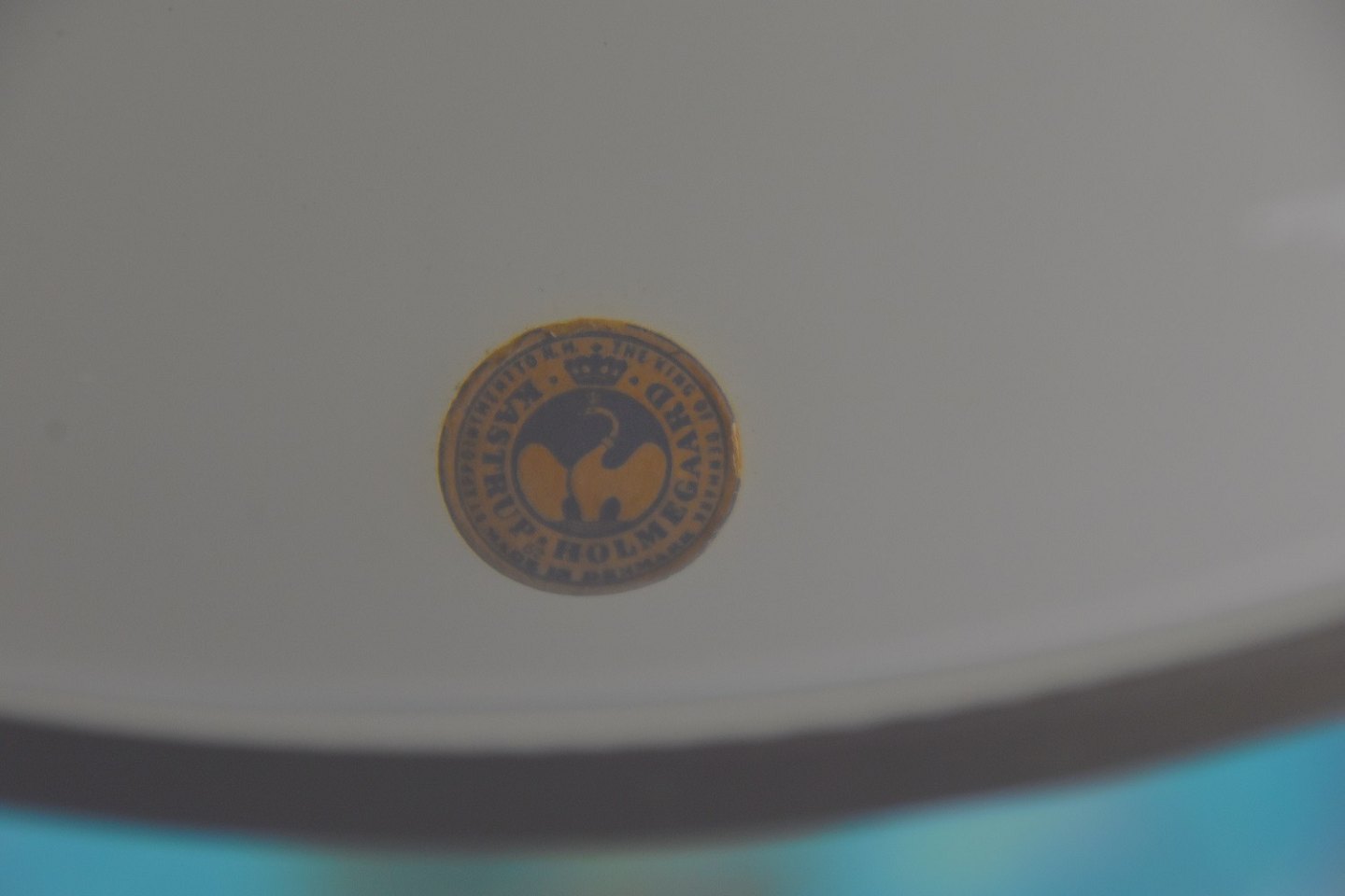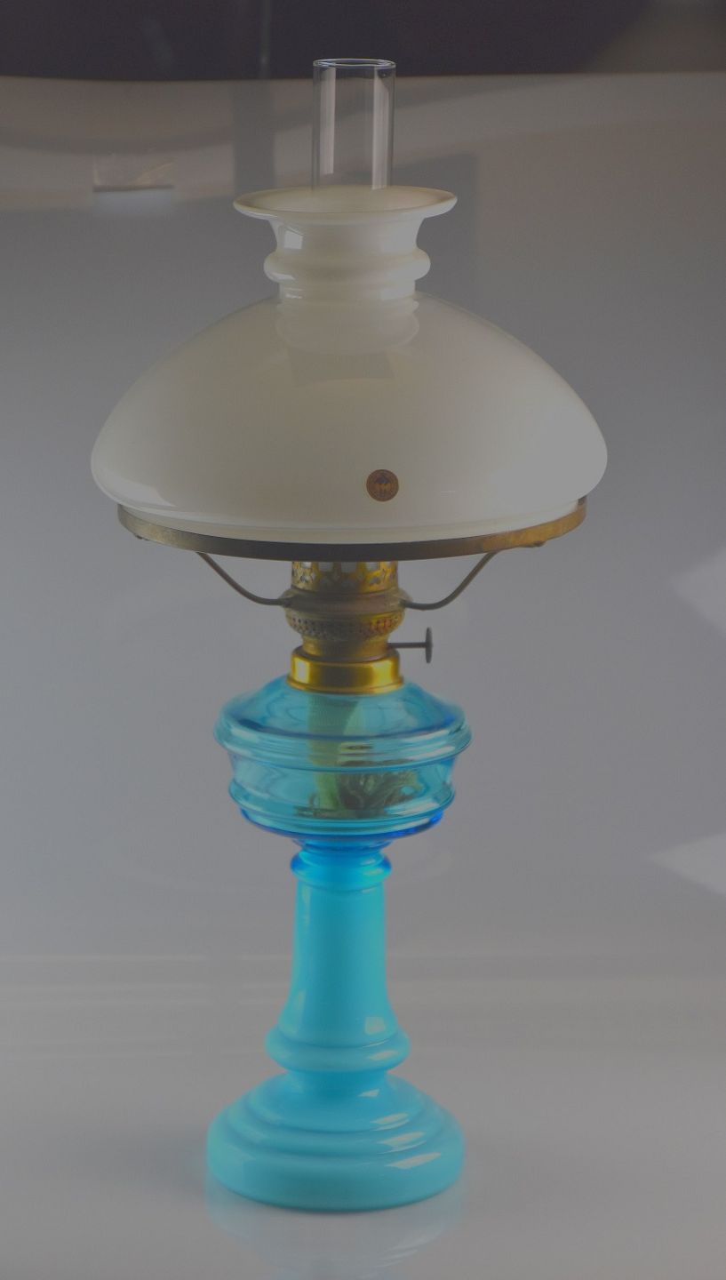 Holmegaard olielampe, opalhvid glasskærm, turkisblå bund