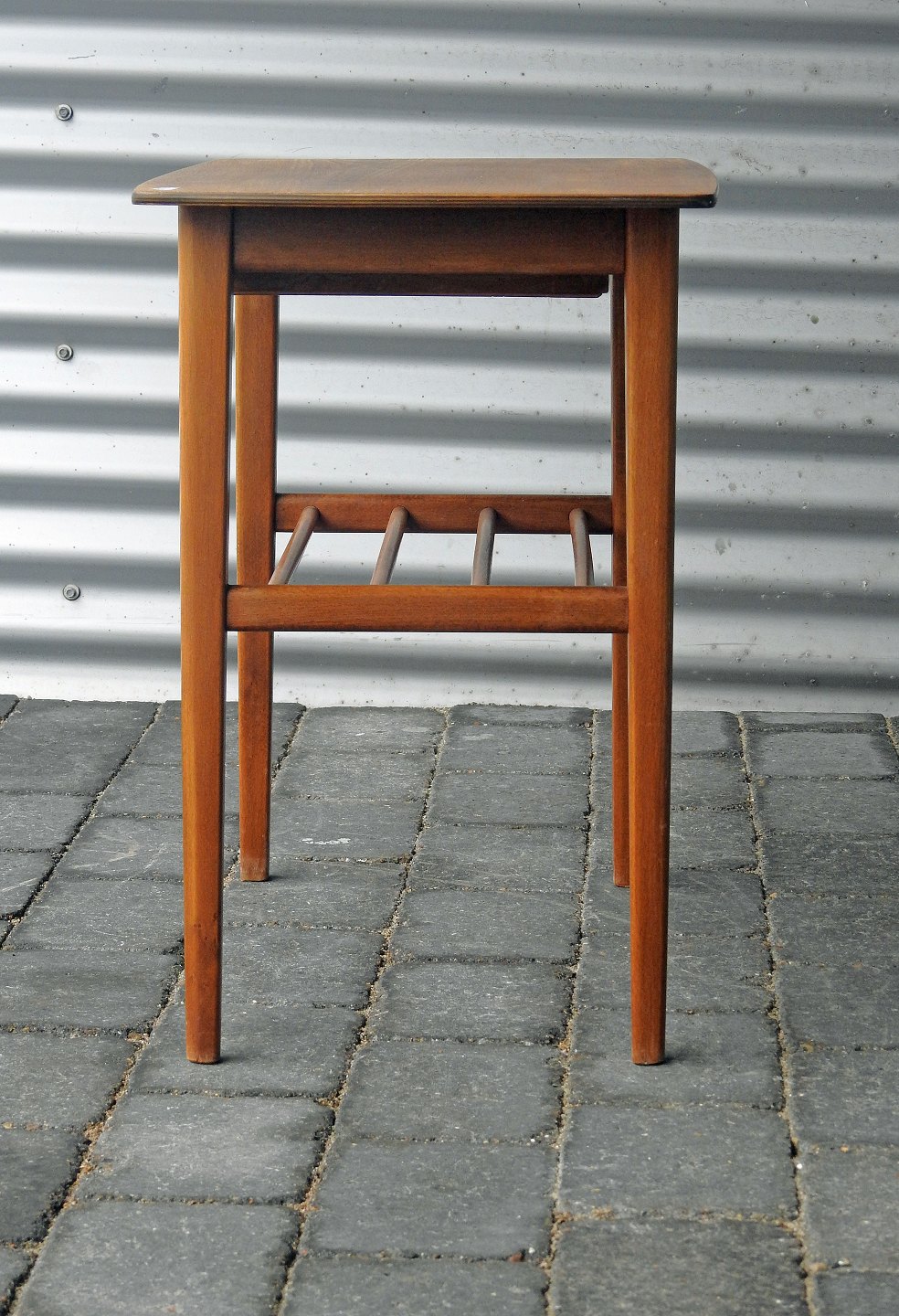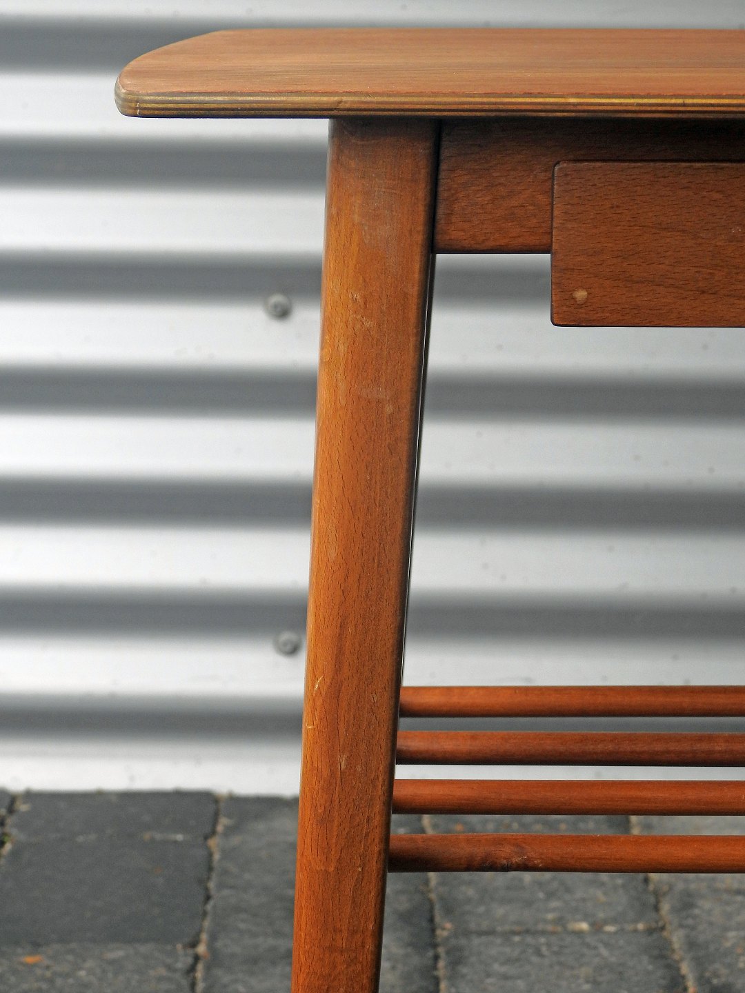 Entremøbel med teak plade og lakeret bøg med skuffe og hylde