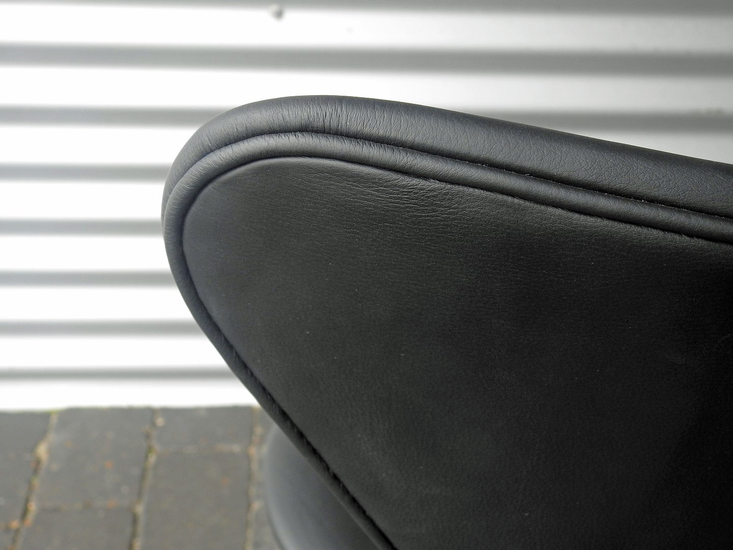 Fremstår med nypolstret sæder i sort læder. Høj model.