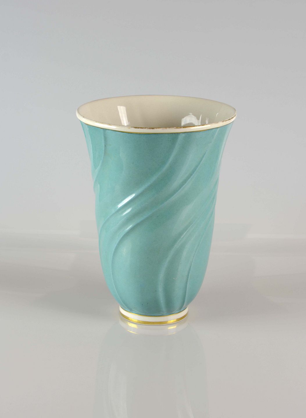 Grøn vase med snoninger og forgyldte kanter fra Lyngby Porcelæn