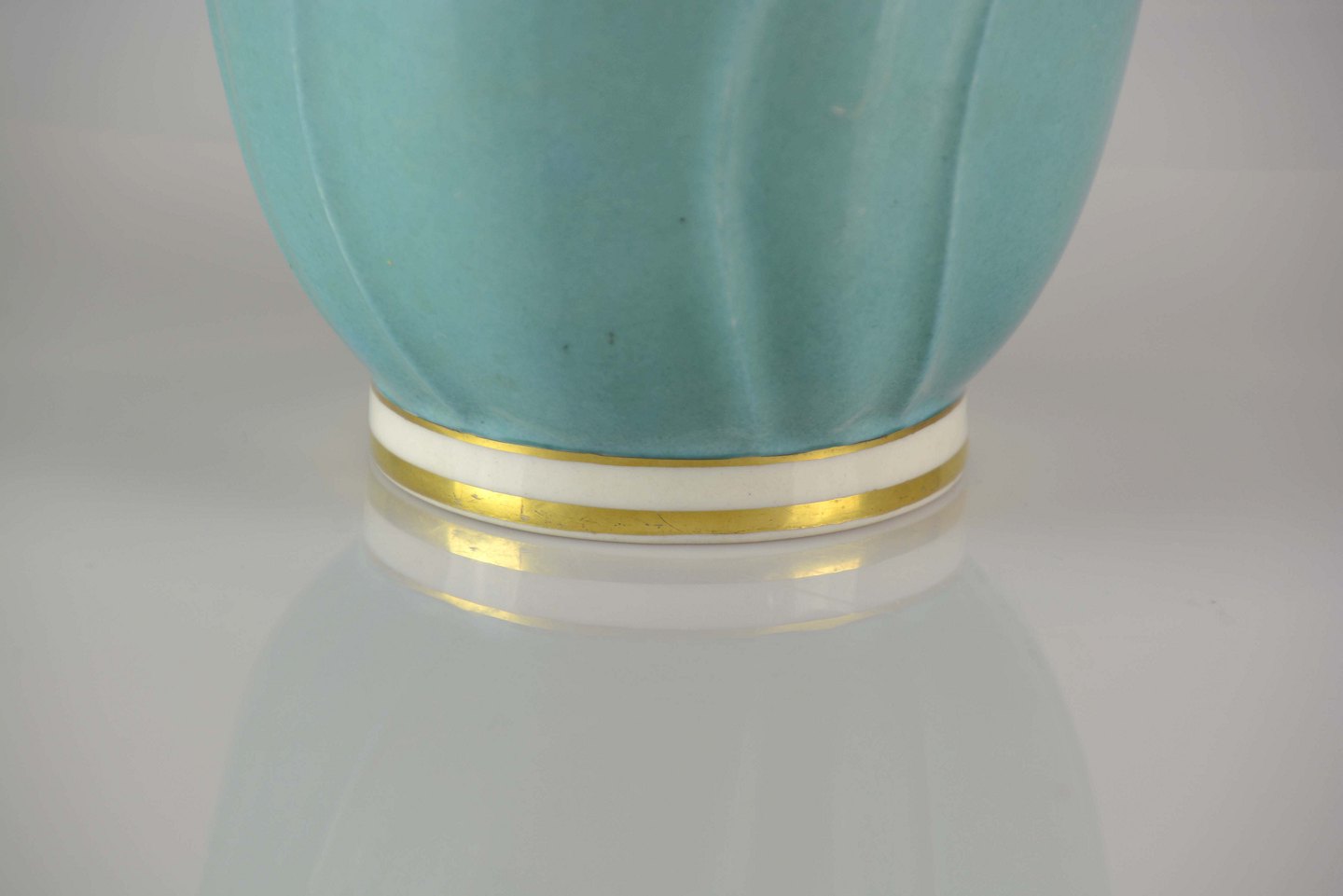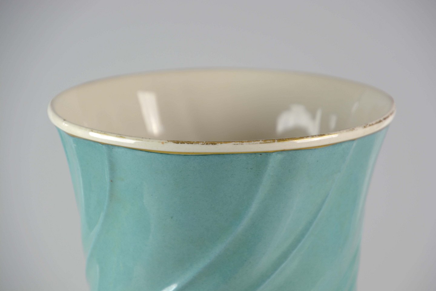 Vasen har enkelte mindre nøk på overfladen og slidt forgylden kant i toppen.