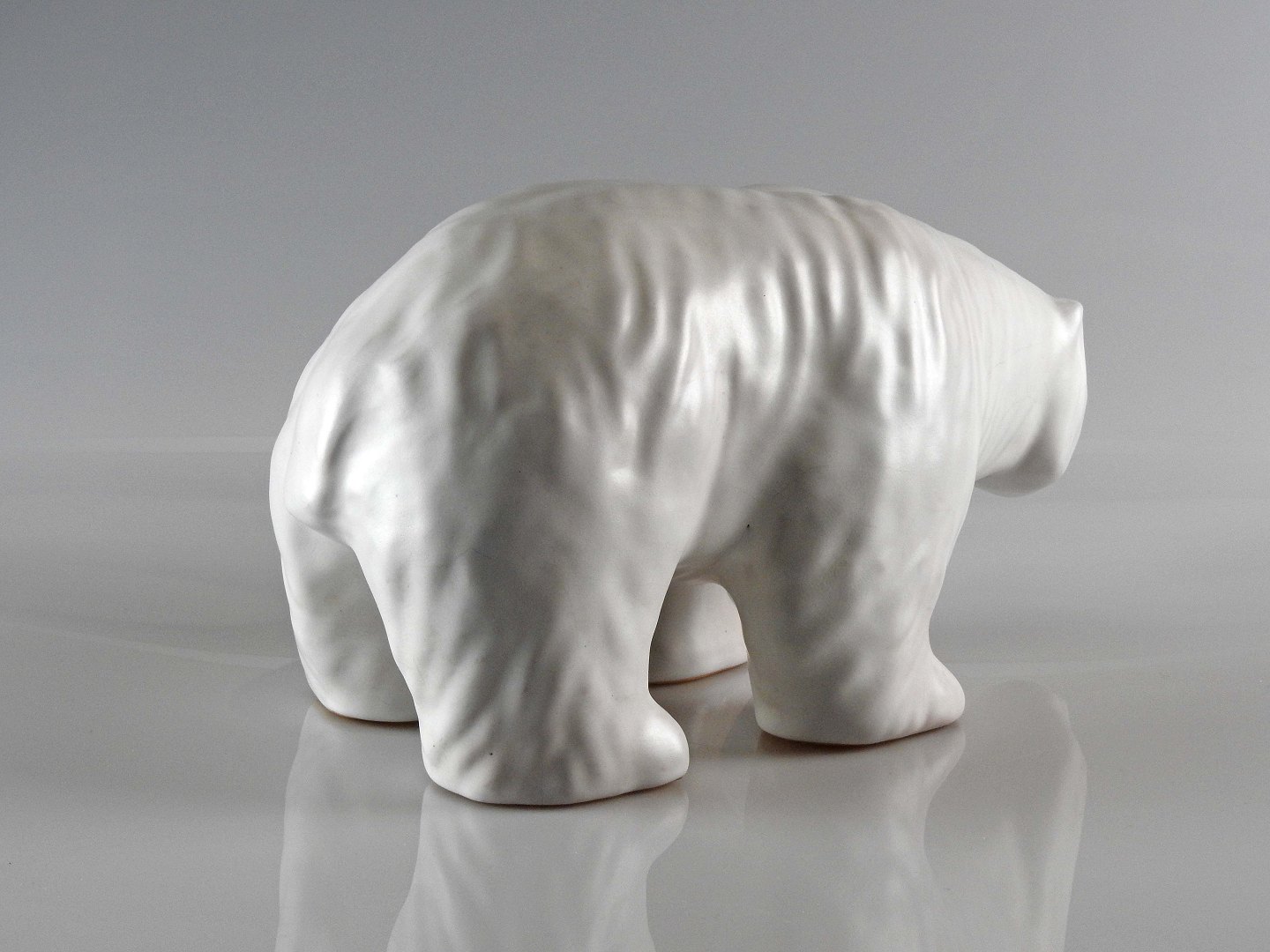 Isbjørn i hvidglaseret keramik fra Johgus keramik.