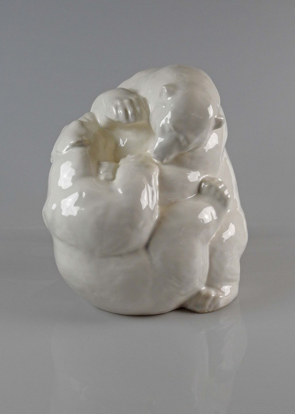 Figur af brydende isbjørne i glaseret keramik fra Kähler