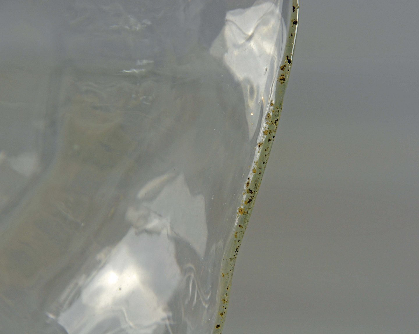 Intakt med ujævnheder i glasset i topkanten af kanden.