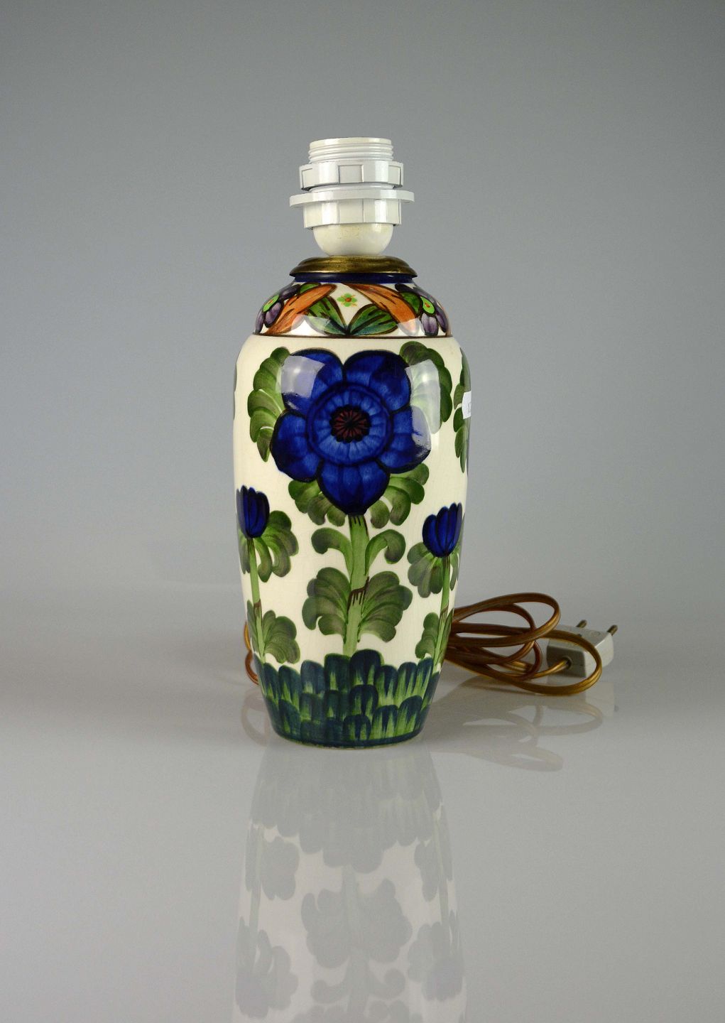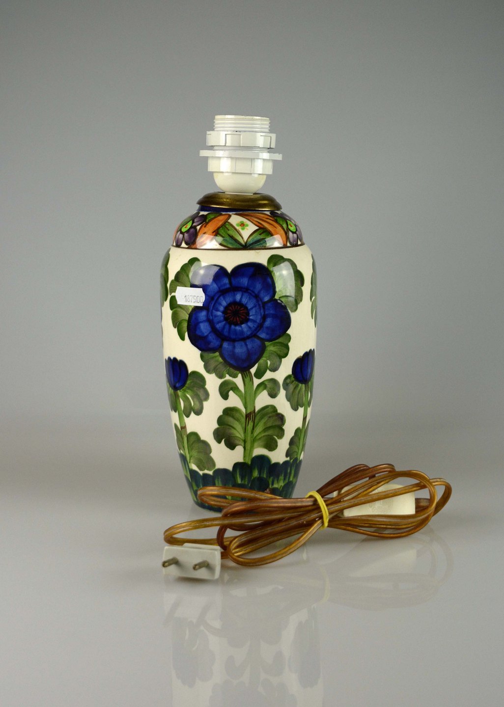 Bordlampe i kunstfajance med blå blomster fra Aluminia nr. 546/480
