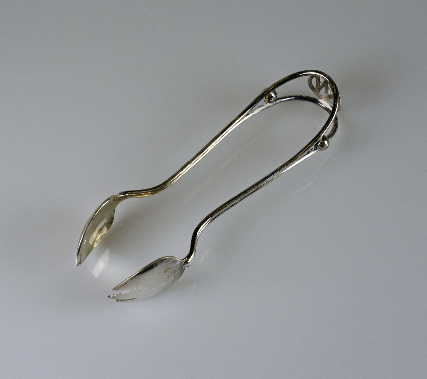 Tang og beslag er 830 sølv og med bogstaverne RN