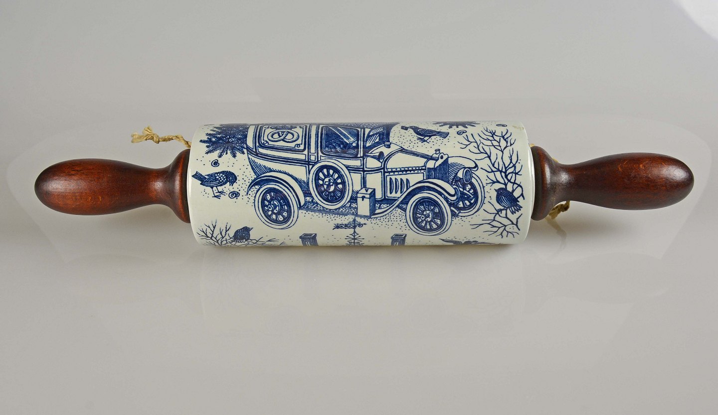 India kagerulle af porcelæn med forskellige motiver og træhåndtag