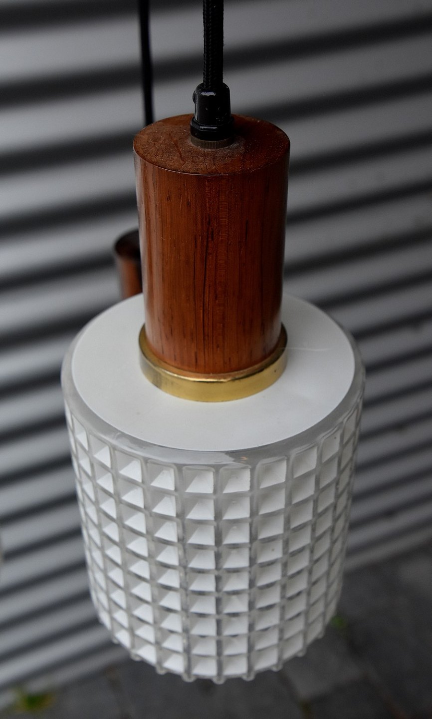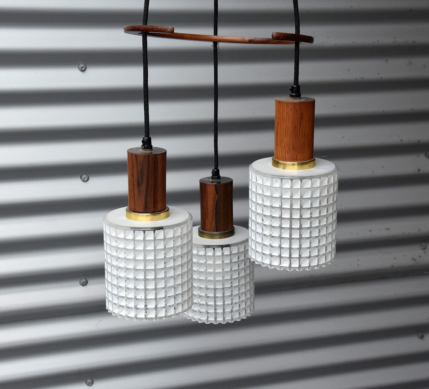 3-delt pendel med palisander og opalglas, fra ca. 1950