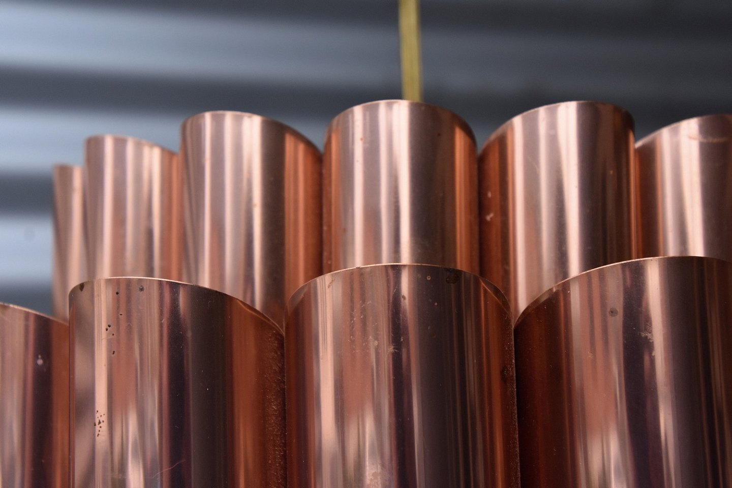 Pendel i kobber og sortlakeret metal.