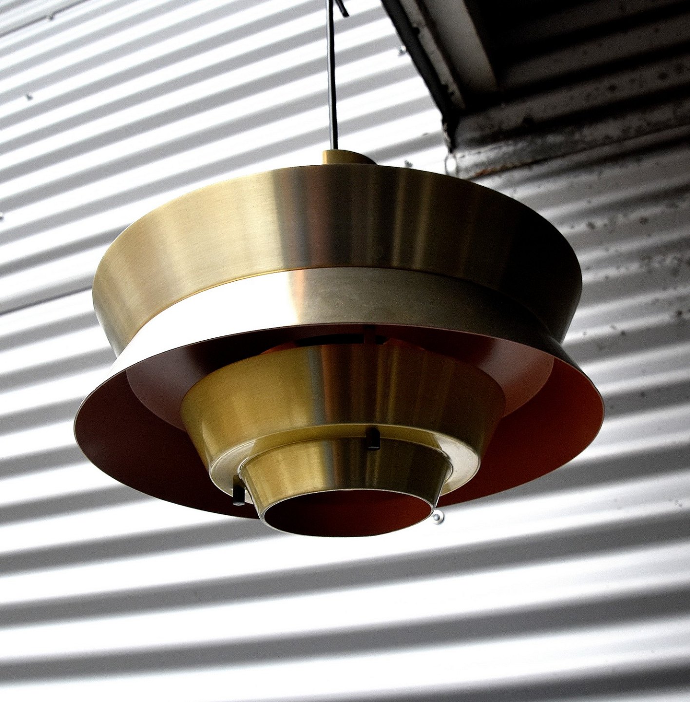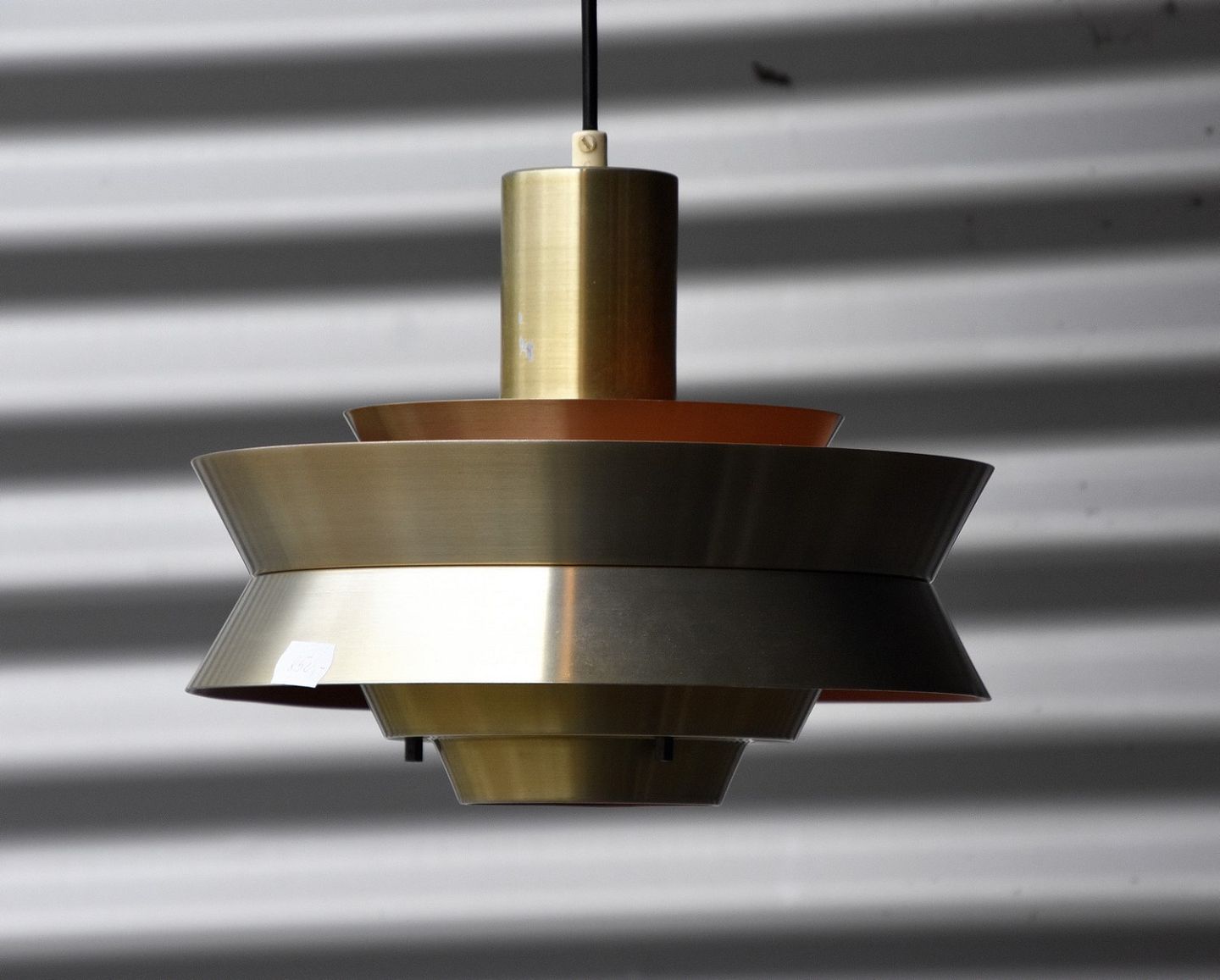 Messing pendel, der er lakeret orange indvendig. Carl Thora