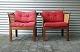 Plexus lænestole (2 stk) med rødt stofbetrukket sæde og ryglæn