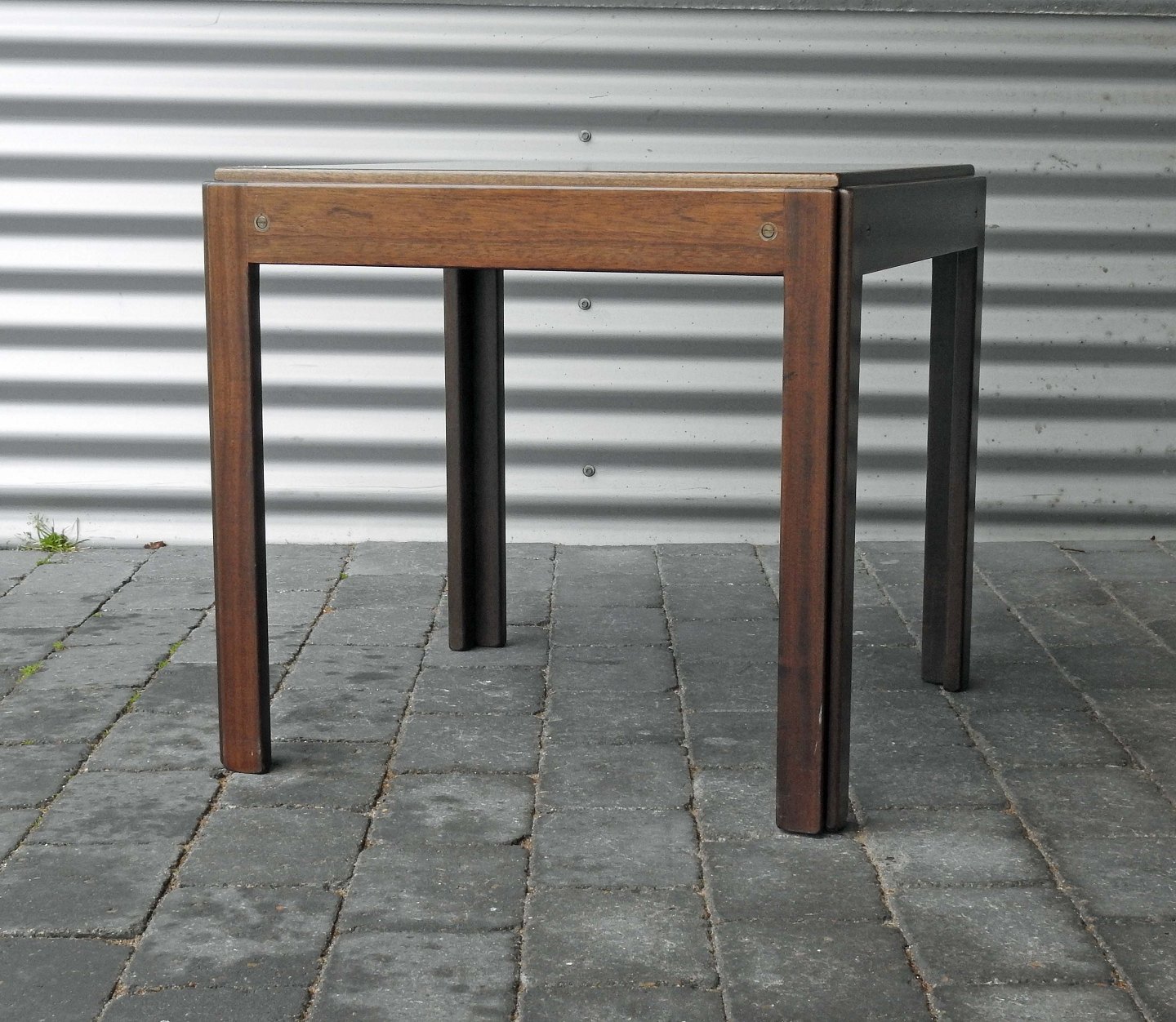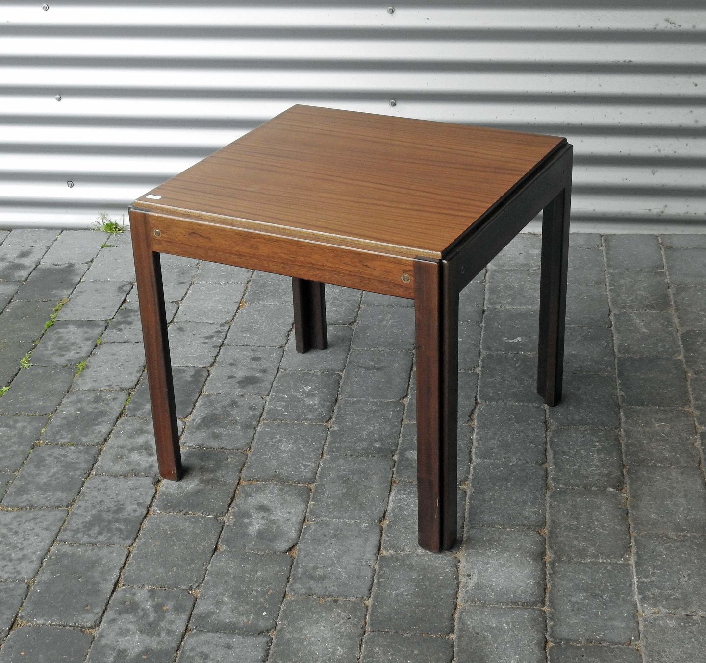 Kvadratisk sofabord i mørkt lakeret træ. Se anden varenr der er 2 ens borde.