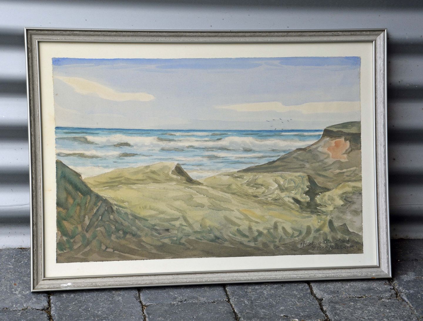 Akvaral med motiv af klitter og hav af Lars Nielsen
