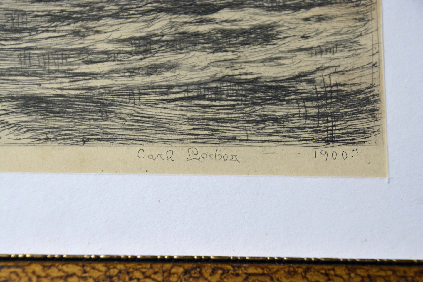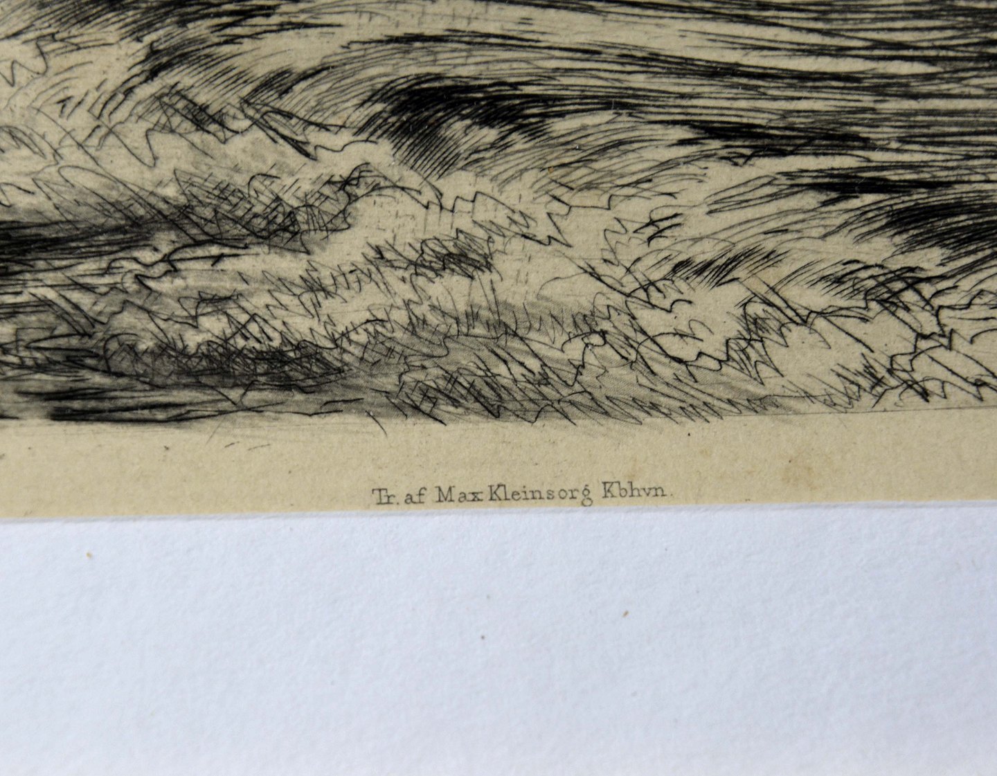 Træsnit med motiv af redningsbåd på hav af Max Kleinsorg efter maleri af Carl Locher, 1900
