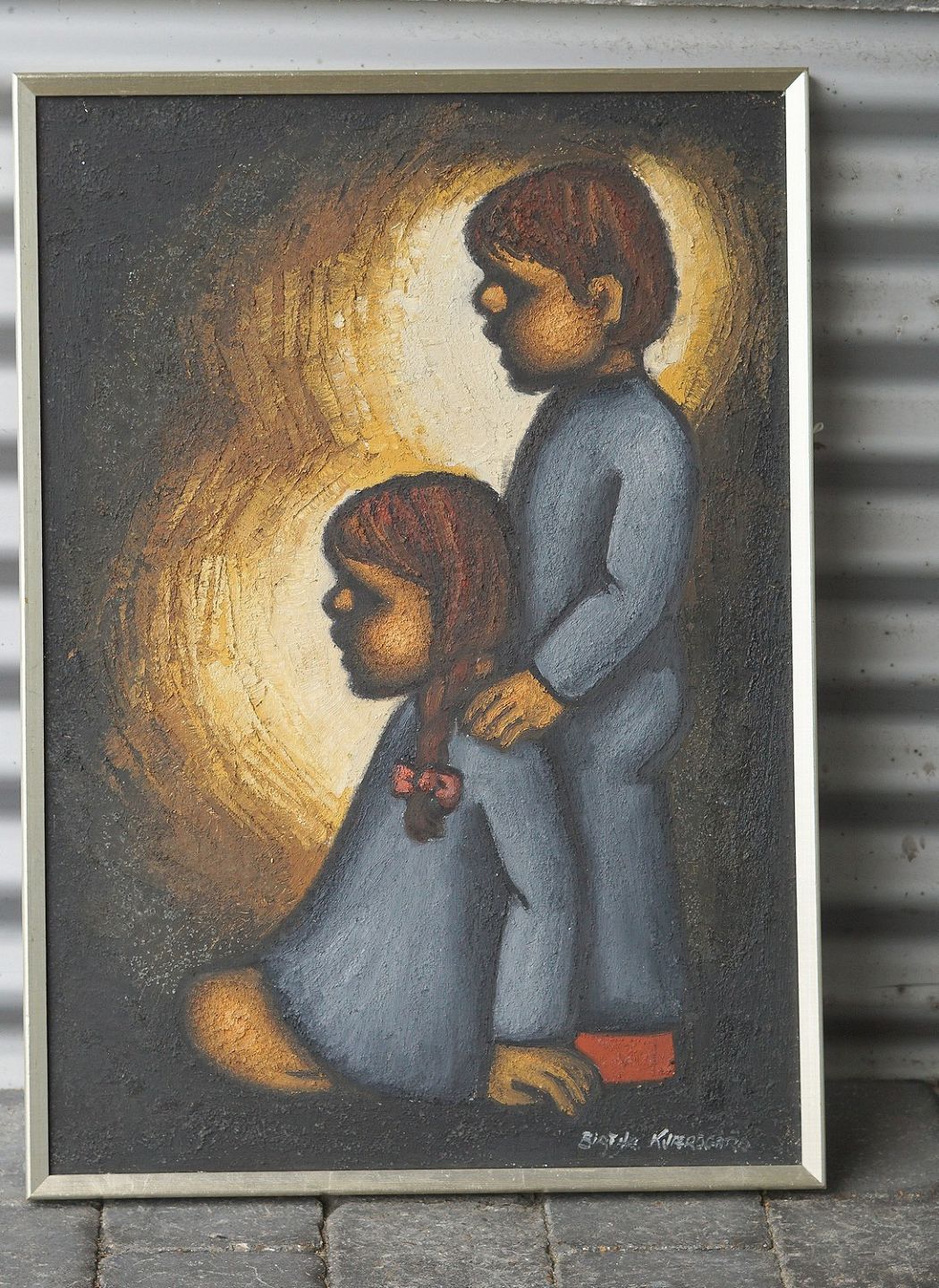 Maleri, "Børn", olie på lærred, Signeret Birthe Kjærsgaard
