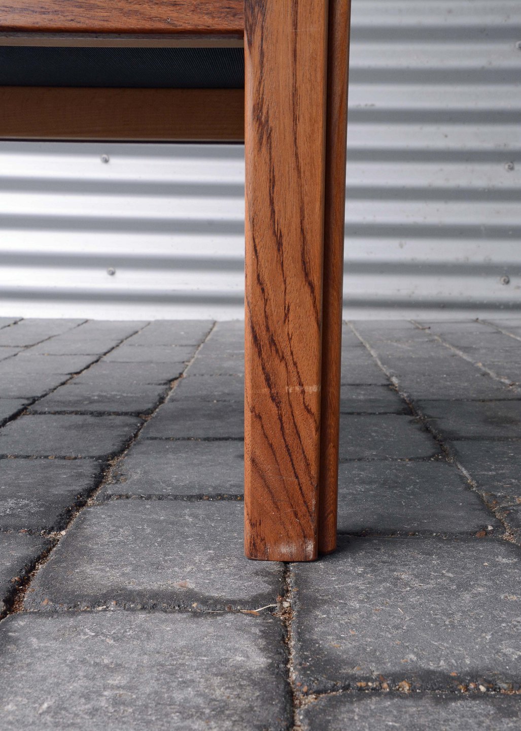 Plexus skammel i palisander med nye gjorder og ældre hynde i stribet uldstof