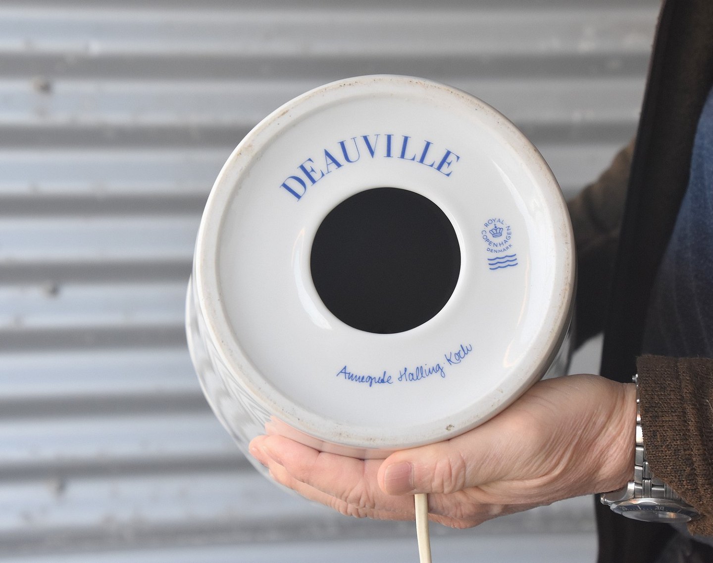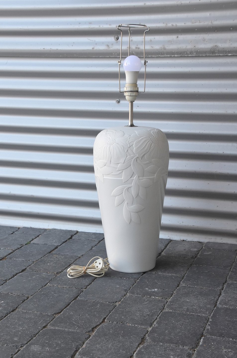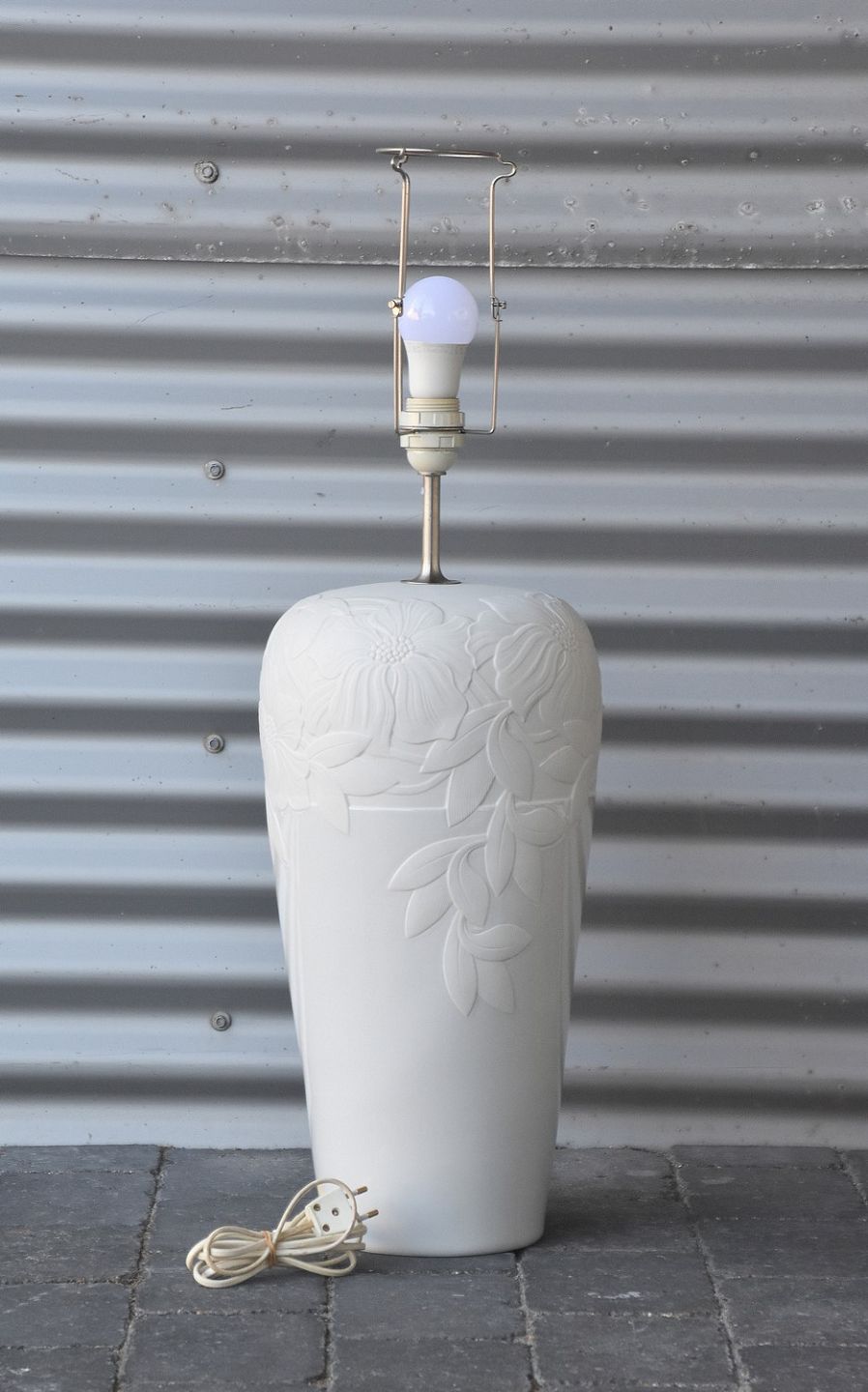 Royal Copenhagen, hvid gulvlampe. Lampen hedder Deauville og er designet af Annegrethe Halling Koch.