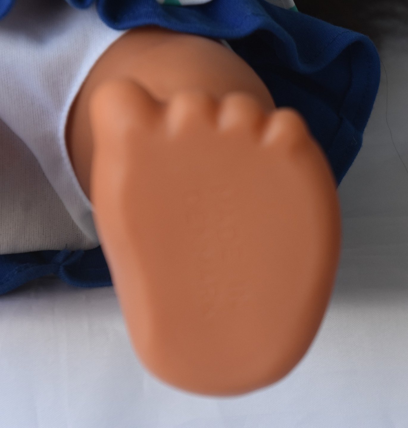 Blå kjole med hvide vest med grønne pletter