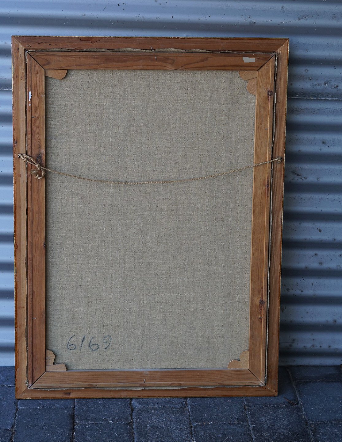 Maleri af siddende ballerina, olie/akryl på lærred.