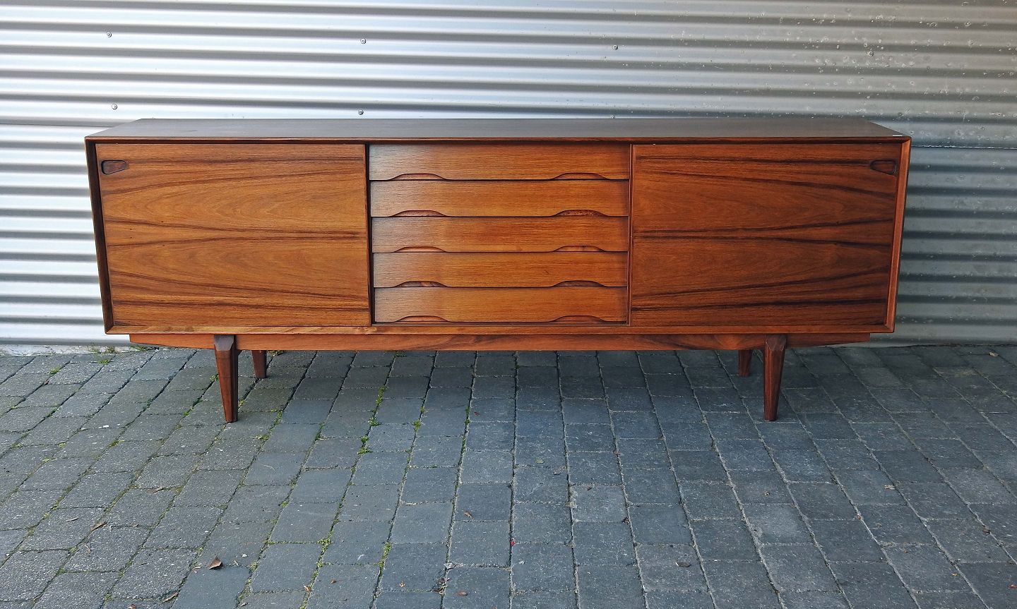 Skænk i palisander med 5 skuffer og to låger med 4 indvendige hylder