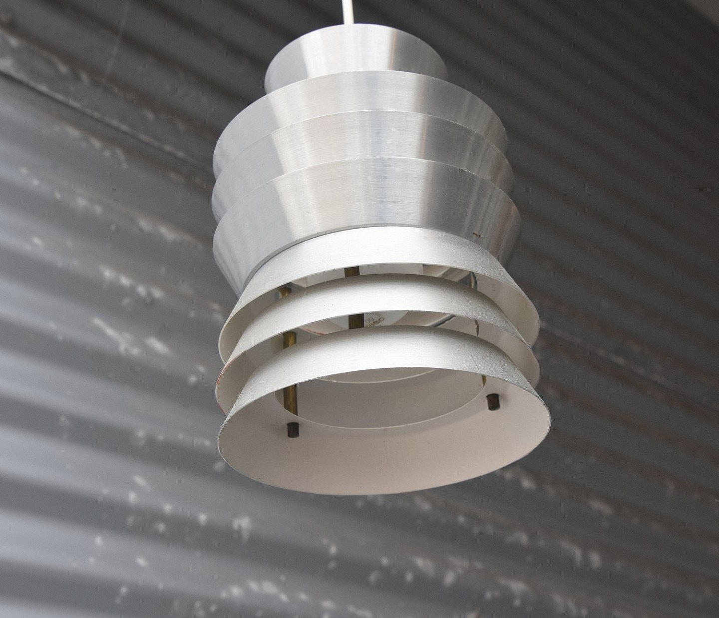 Et par Loftspendel, metal "sølvfarvet" udvendig og hvidmalet indvendig