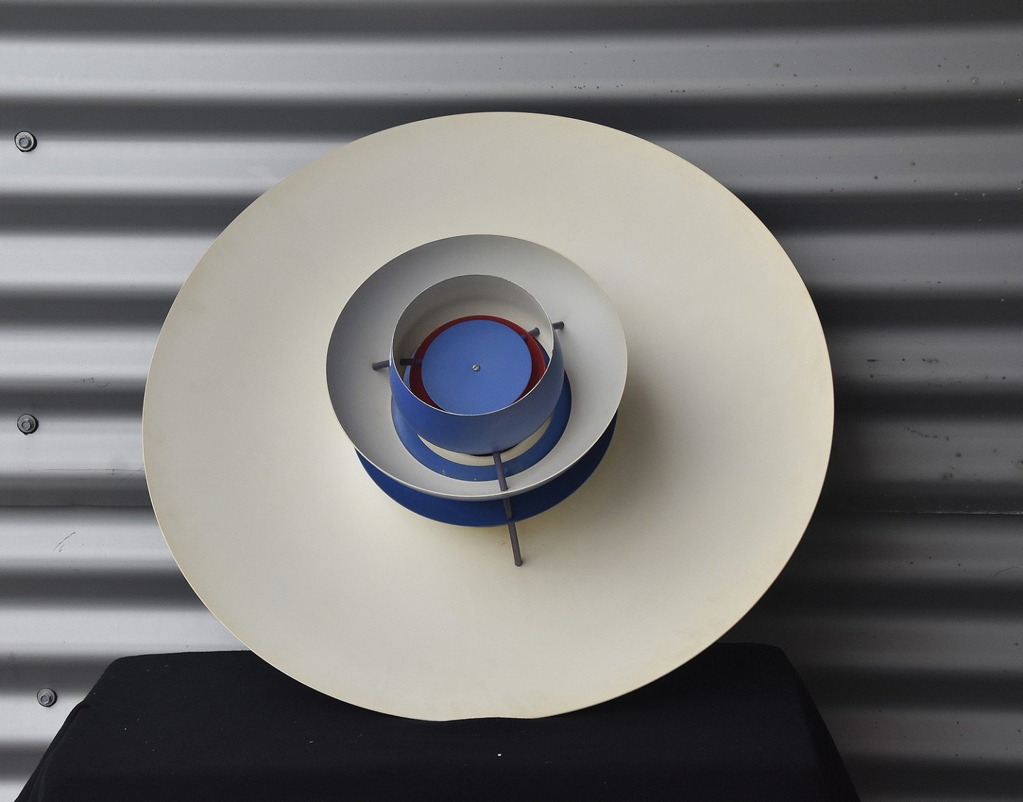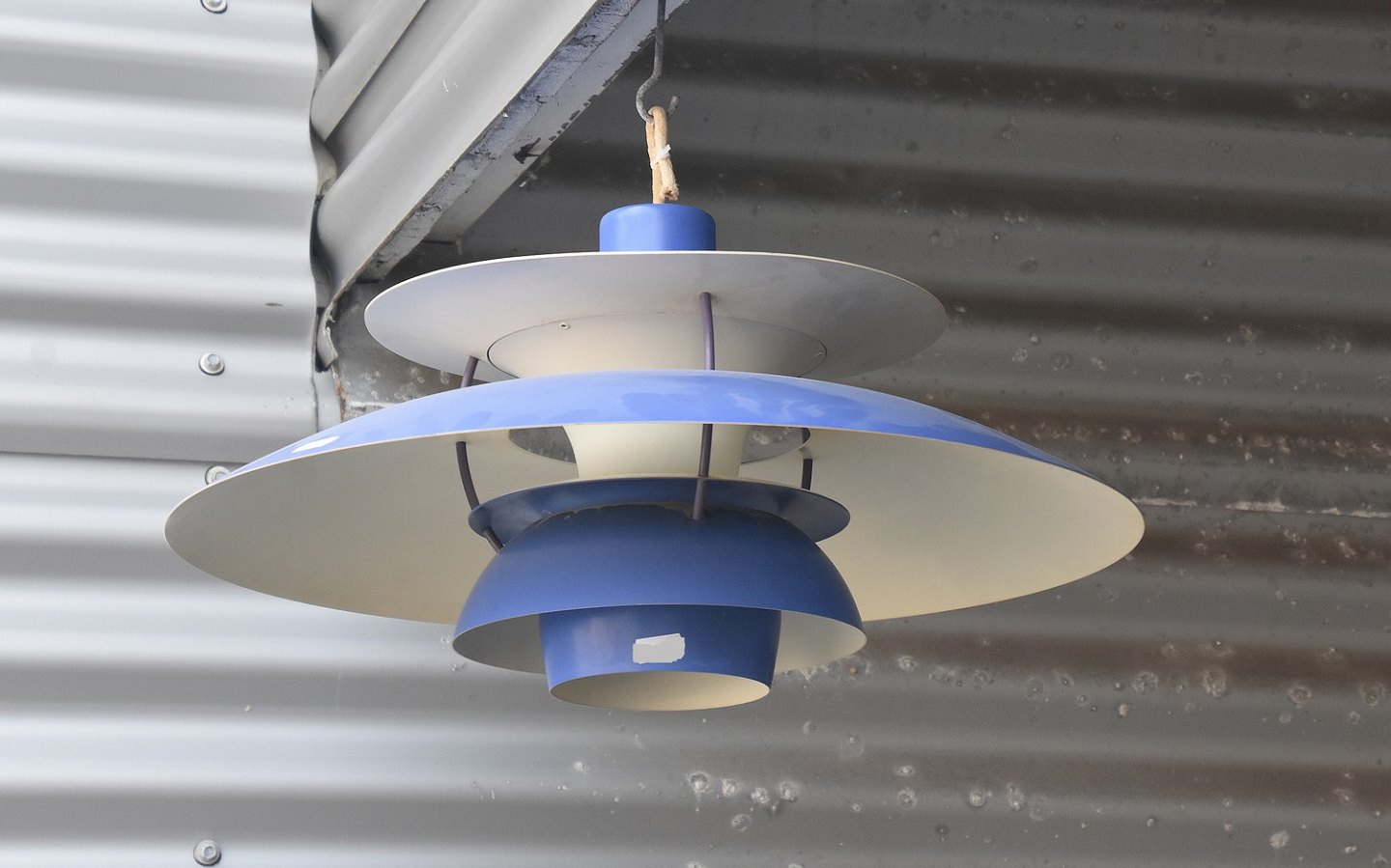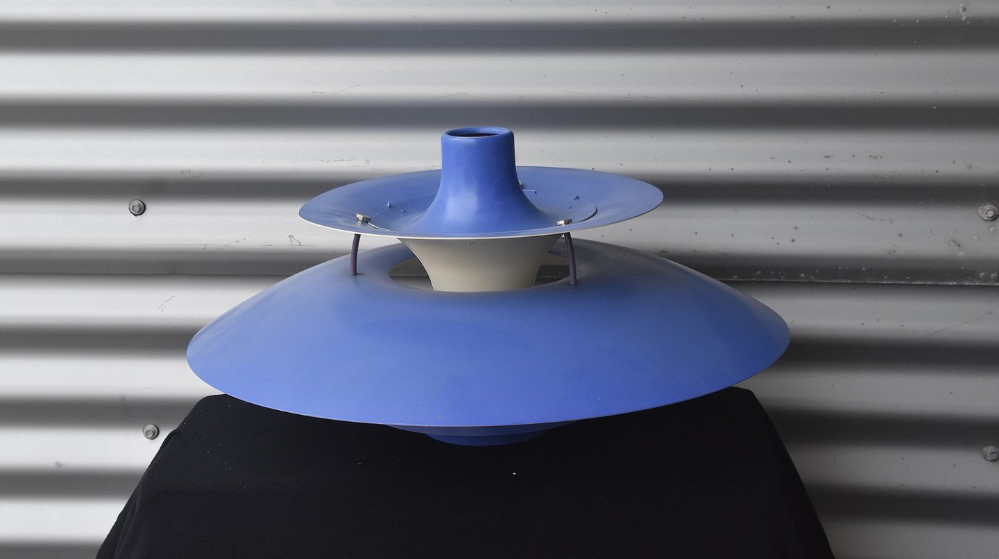 PH5 med blå/lilla yderskærm og hvid inder skærm. Pendlen er lavet i metal og malet